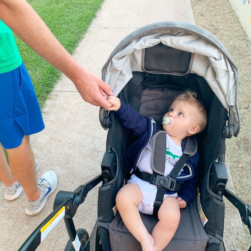 Post-massage, I zipped over to our office to semi-interrupt the live fantasy football draft that was going on to pick up Dempsey. Imagine, I walked into the conference room and there he was in his highchair at the head of the table and when he looked up and saw me, he pointed at me and gave a big smile. Melted straight into a puddle on the floor over that moment 🥰🥰🥰 I let him finish his lunch, then whisked him off toward home. We played for a little, then I put him to sleep for what ended up being a decently long nap. I was able to get my bearing and clean up a few things, then get a good head start on dinner. Just what everyone wants when it’s 90 degrees out… soup! After Joey was back home and we had all eaten dinner, we took our family walk and Joey and Demps held hands on the way back ❤❤❤