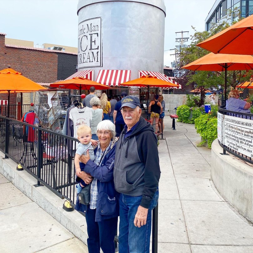 Half of our Friday plans got cancelled — “LOVE when plans get cancelled!” is a real thing this serious homebody said — but we still got to take Joey’s grandparents, Lori and Dempsey to Little Man for ice cream ❤ Joey’s grandma had been wanting to do that all summer long, so I was super happy we finally made it happen. Demps got a little taste of Grandma’s peach cobbler ice cream, that lucky boy! Afterward, Lori stayed for burger dinner and how cute is that teensy burger for Dempsey?? Unfortunately a well done burger slider is a bit crispy and he didn’t have the easiest time eating it but he seemed just as happy with his back up dinner of chicken and polenta 😊