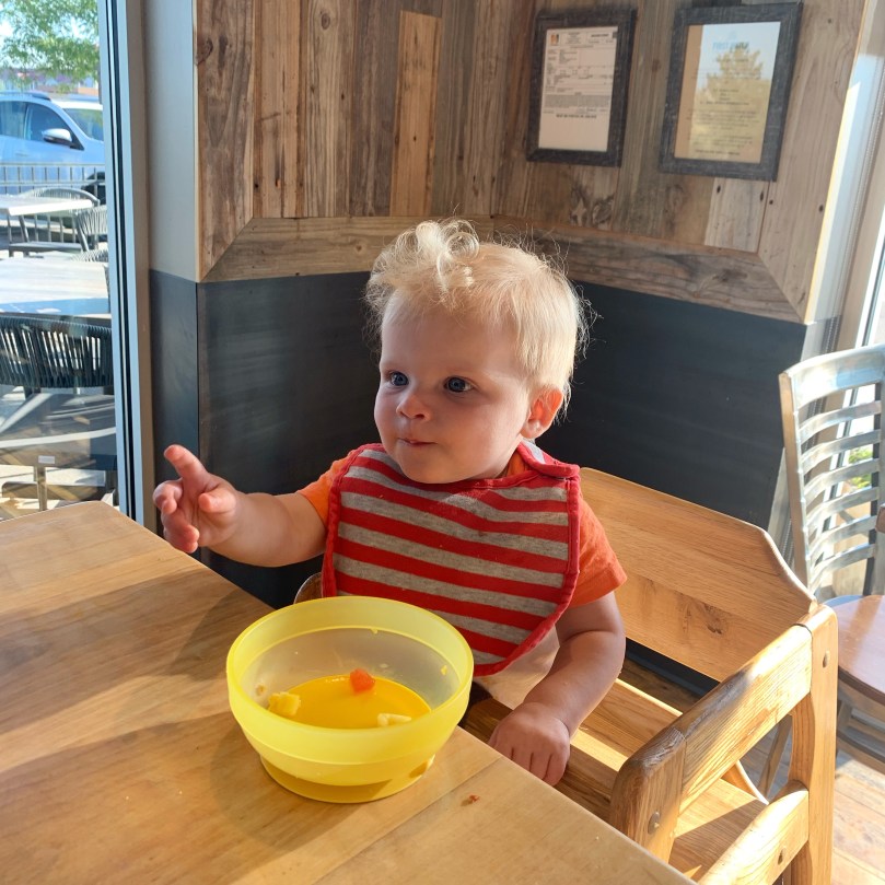 He got to see all his grandparents and BOTH sets of great grandparents this week! Held Grandpa’s finger on Monday, sat on Great Grandpa Dave’s lap for Tuesday lunch and had breakfast out with the Great Grandparents Thoutt on Wednesday. What a lucky boy!