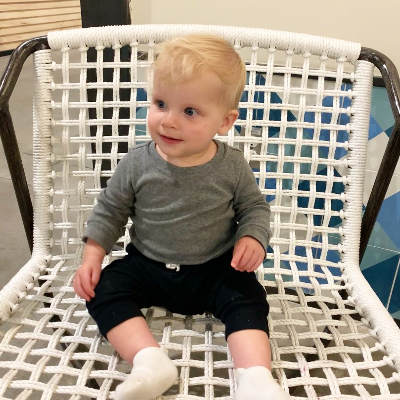 Post nap, #2, we put up a few Halloween decorations in the front yard, but I think Dempsey was more into the boxes than the actual dΓ©cor. We had evening plans to meet up with Hannah, Josh and the boys at Edgewater Public Market but Mason wasn’t feeling well so they had to take a raincheck. We were hooked on the idea though, so we still headed over. Tried the mac n cheese and pizza spots, which were good, but the sliders are still best. Dempsey was SO distracted by the group of people sitting behind us, so he wasn’t eating the best dinner but what can you do? He did love this chair however π