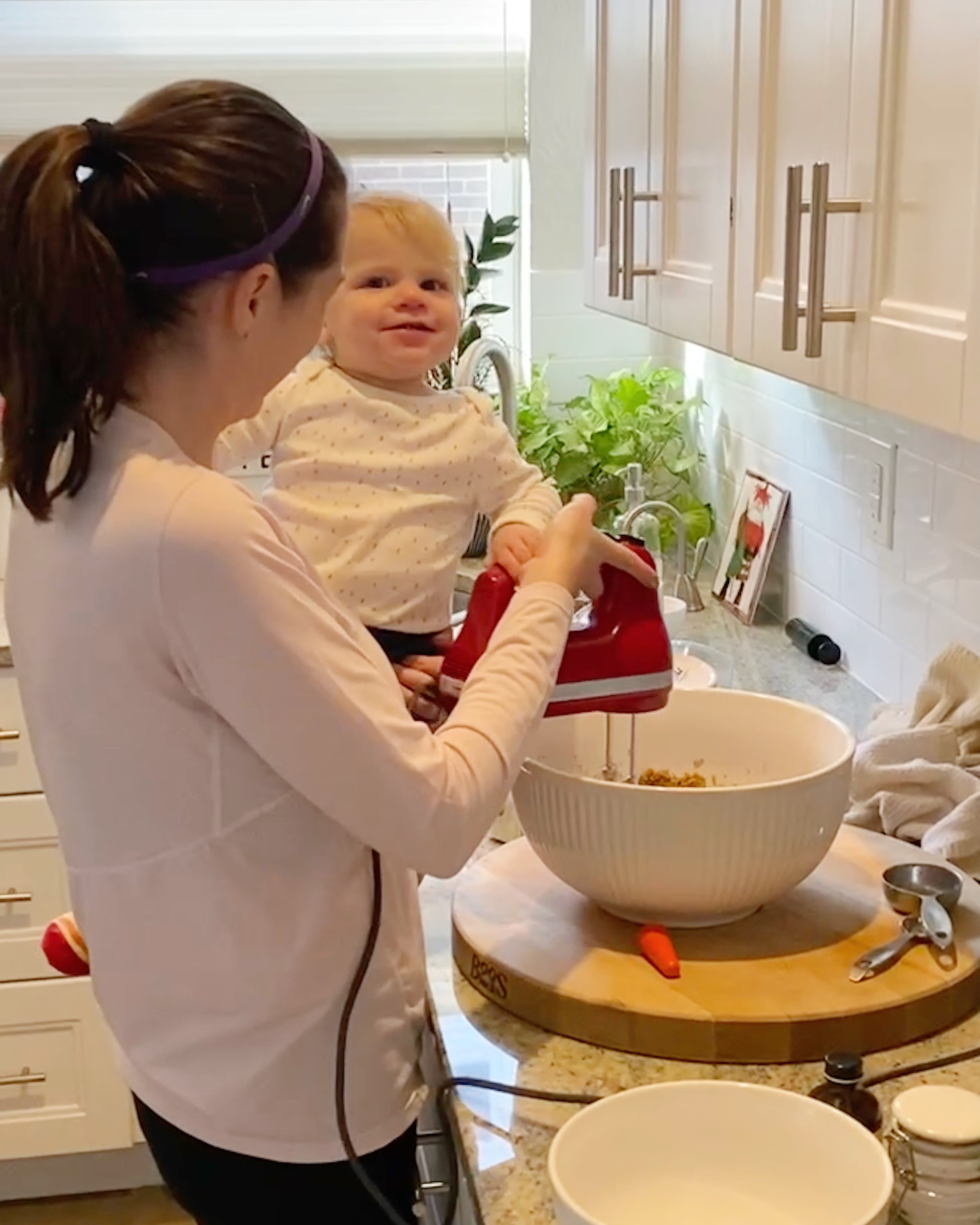 Spent the afternoon going for a run and baking cookies. If you guys thought I was annoying when we started feeding Dempsey solids, wait till I get to start cooking with him! Sometimes I’ll let him stir or whisk something and he loves it! He helped cream some butter and sugar together and then just kept trying to dig into the dough while I was rolling the balls. Also, the cookies turned out so so good. Love when a recipe tells you to make each cookie 1/4c big!