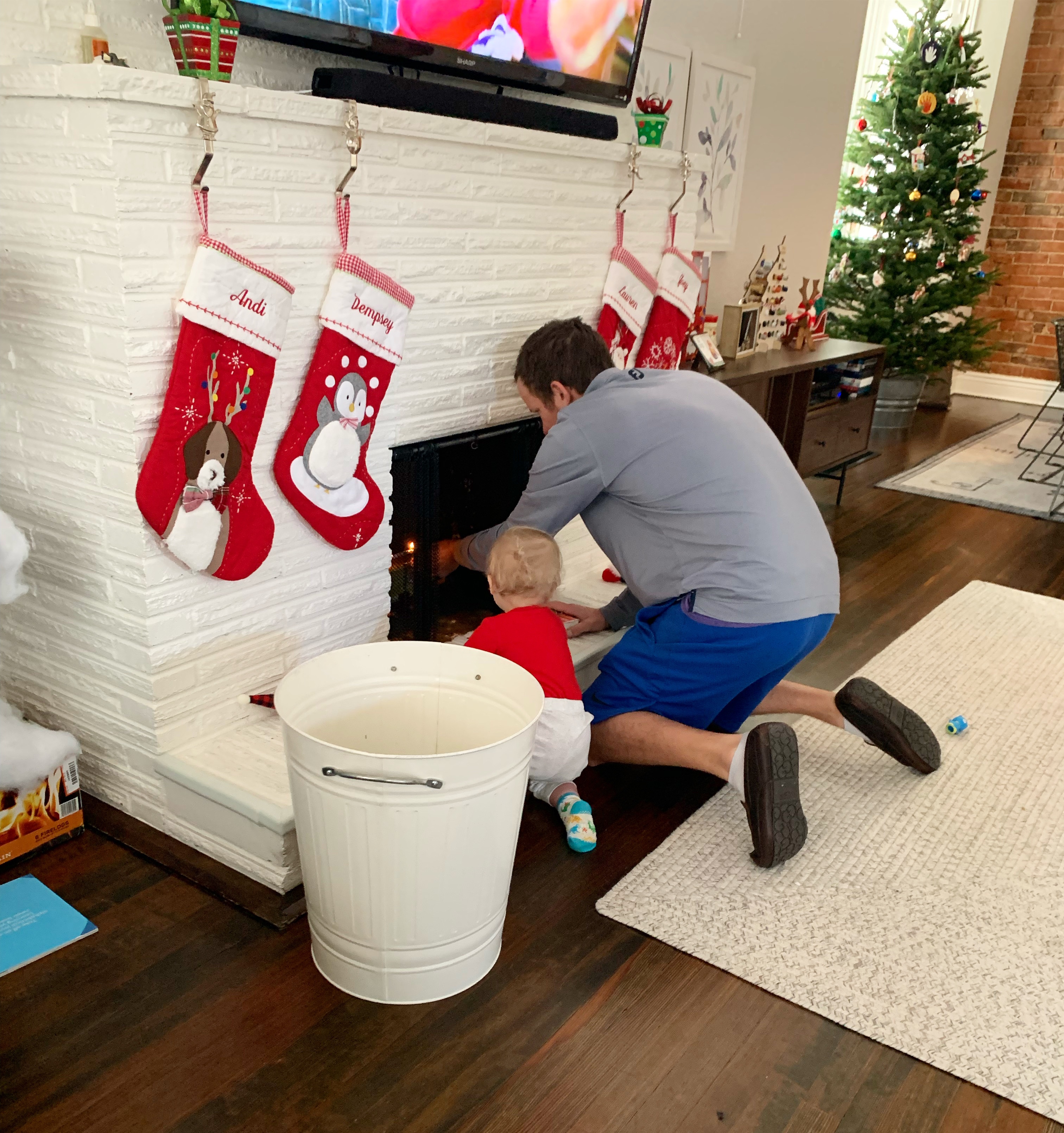 Started our Sunday with take out from Sunny’s. Love when Dempsey has French toast in one hand and a banana in the other πŸ˜‚ We unsuccessfully tried lighting a fire last year, but we figured we’d try again this year and it went way better. Our only mistake was trying to take the log out after it had burned and it was suddenly very smoky, oops! A took off for a facial shortly after and I overhead a guy getting a facial say his skincare routine was to “sometimes splash my face with water” πŸ˜‚