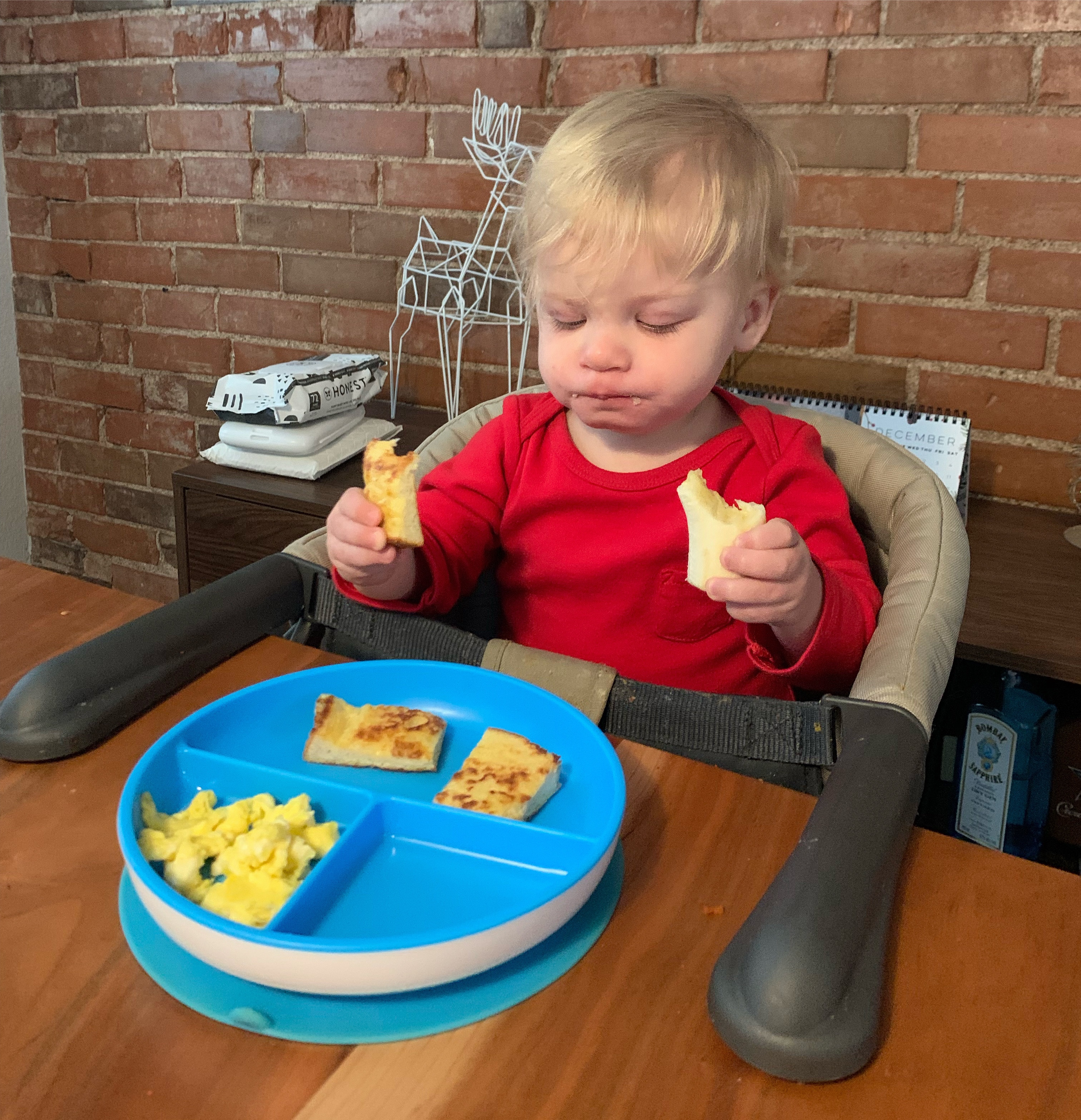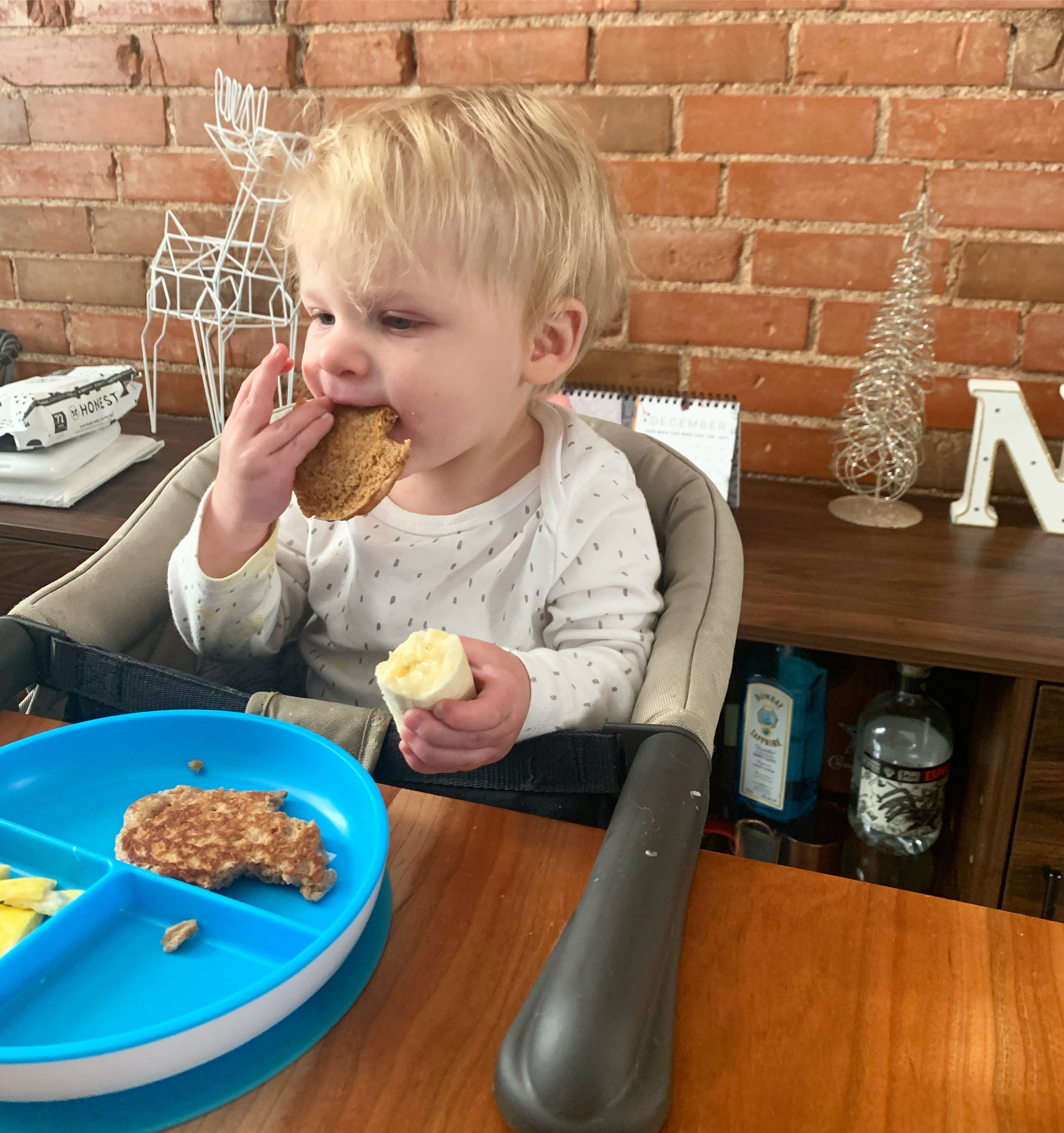 Whole wheat eggnog pancakes for breakfast! I spontaneously decided to try dropping Dempsey and I’s morning time nursing session and he seems totally fine with it, especially if the alternative is pancakes and fruit πŸ˜‚