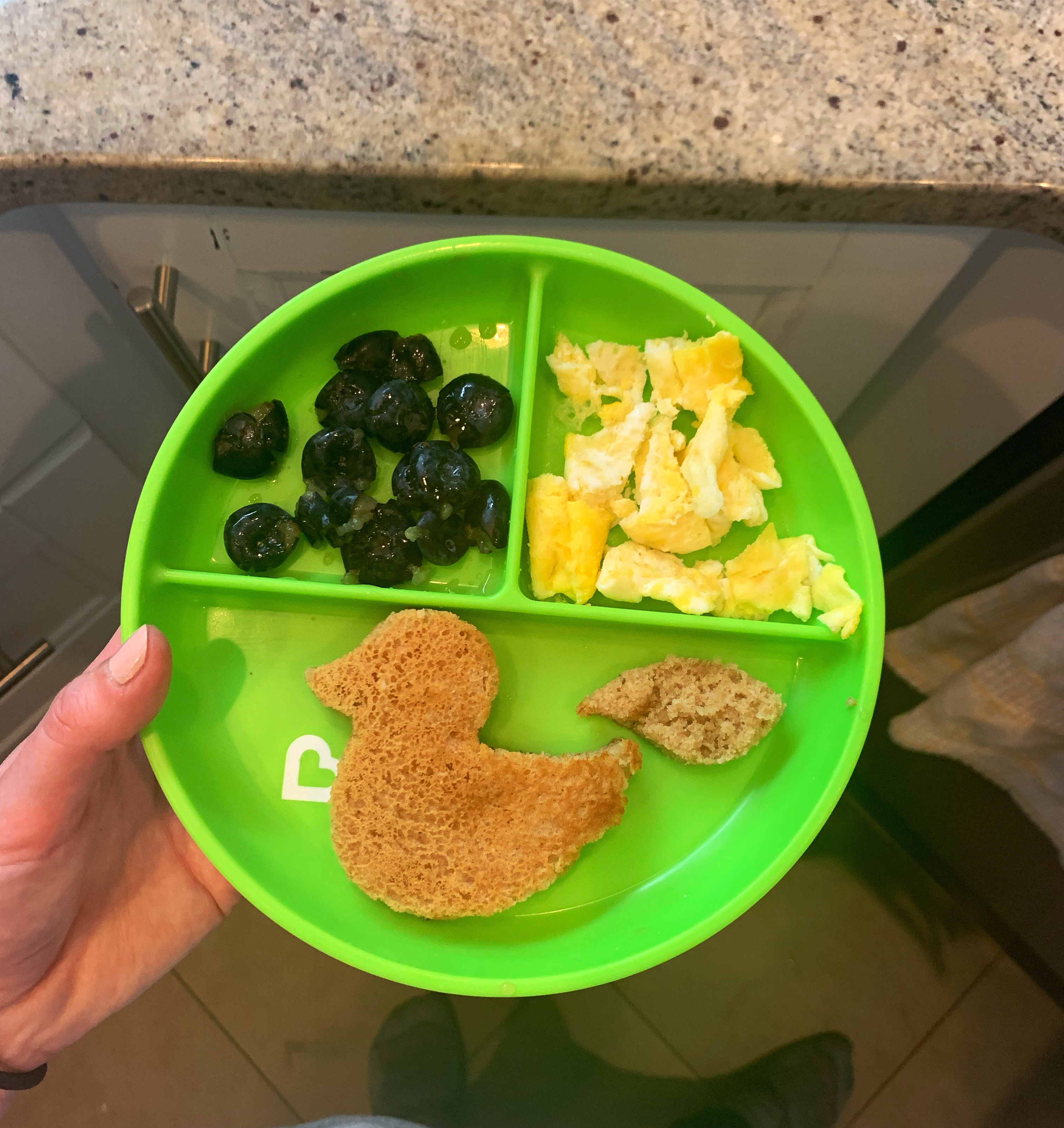 I hadn’t slept the best Thursday or Friday night, but finally did on Saturday and didn’t open my eyes till 7 AM. Dempsey woke up shortly after and we placed an order at The Nosh from bed, then hustled over to pick it up. Had my fingers crossed Dempsey would like biscuits and gravy but he did NOT. He was plenty into egg, blueberries and cinnamon roll though!