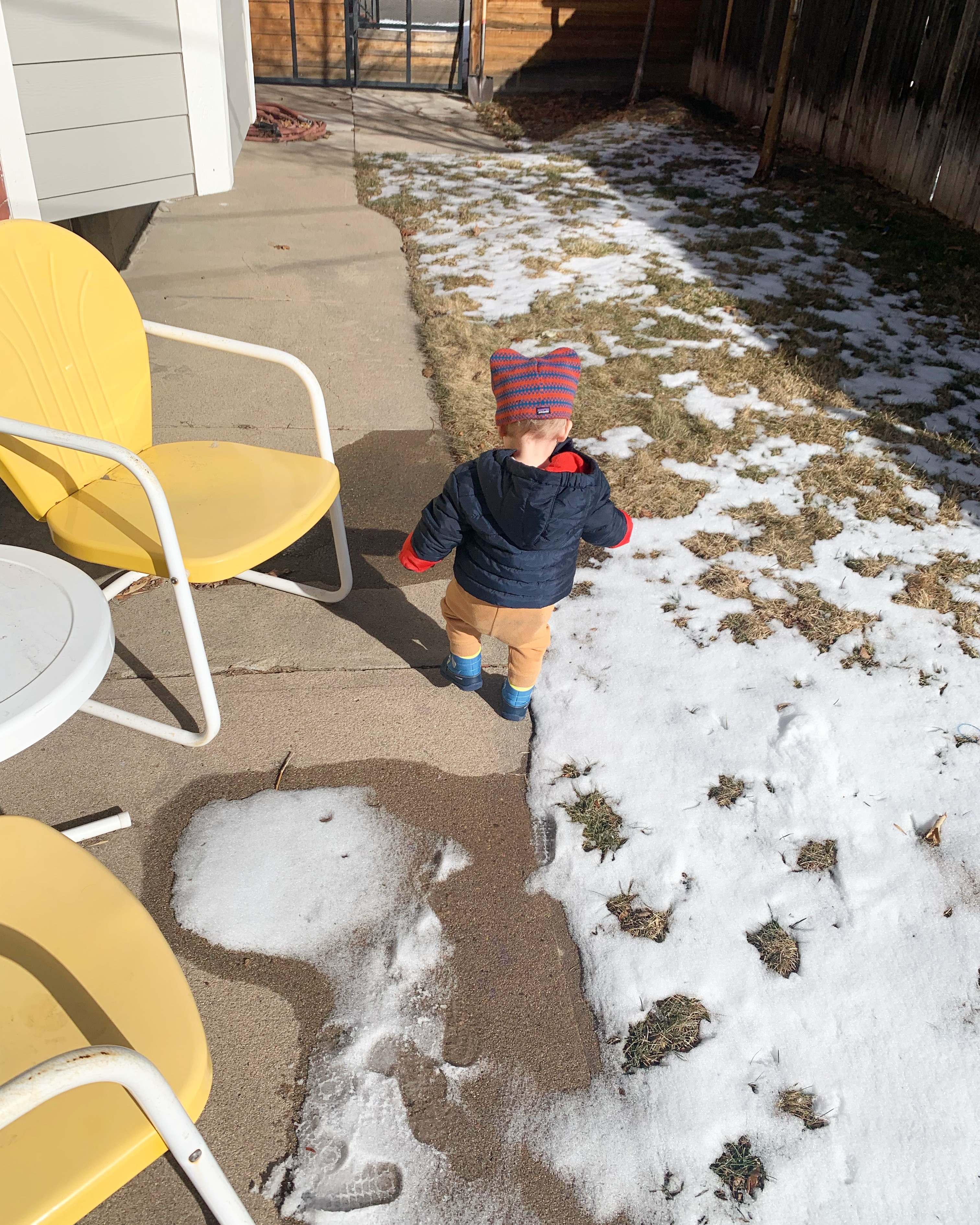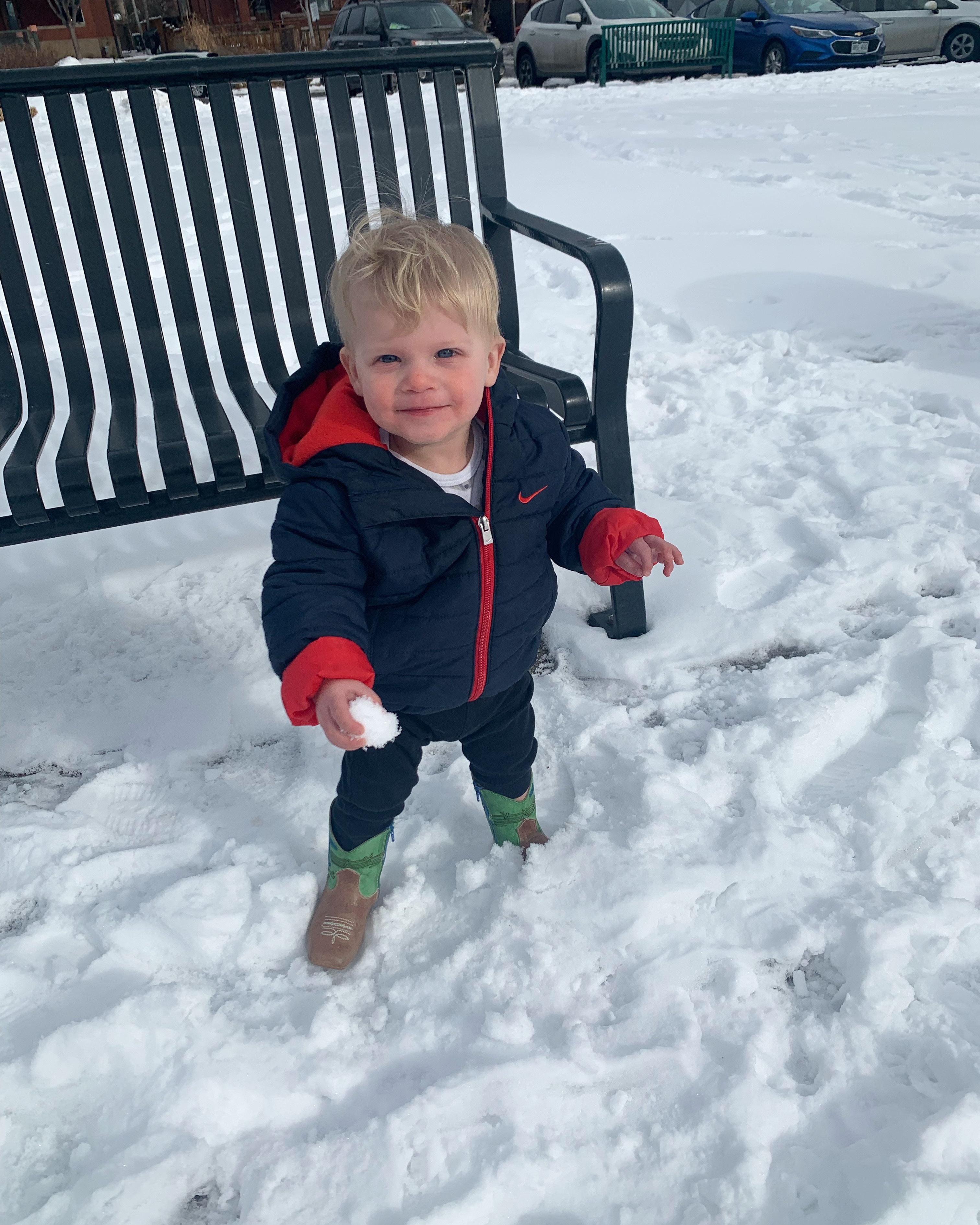 We took a quick trip to the library later on and then he walked around in the snow for a bit. He is very into picking it up and crumbling it 😂 Back at home, he had a snack then went down for his nap. Remember when I said we were back to two naps? I lied. We had a couple of days in a row where he skipped that second nap altogether so we’re back to one and it’s actually been going really well! He’ll sleep 2.5 hours usually. Weird to have lunchtime to ourselves again but also kind of nice. I ate on the couch, then watched some ski jumping and finished my book. I read Me Before You back in 2016 and just got around to the sequel, so I guess that means I will read the third one in 2028 😋