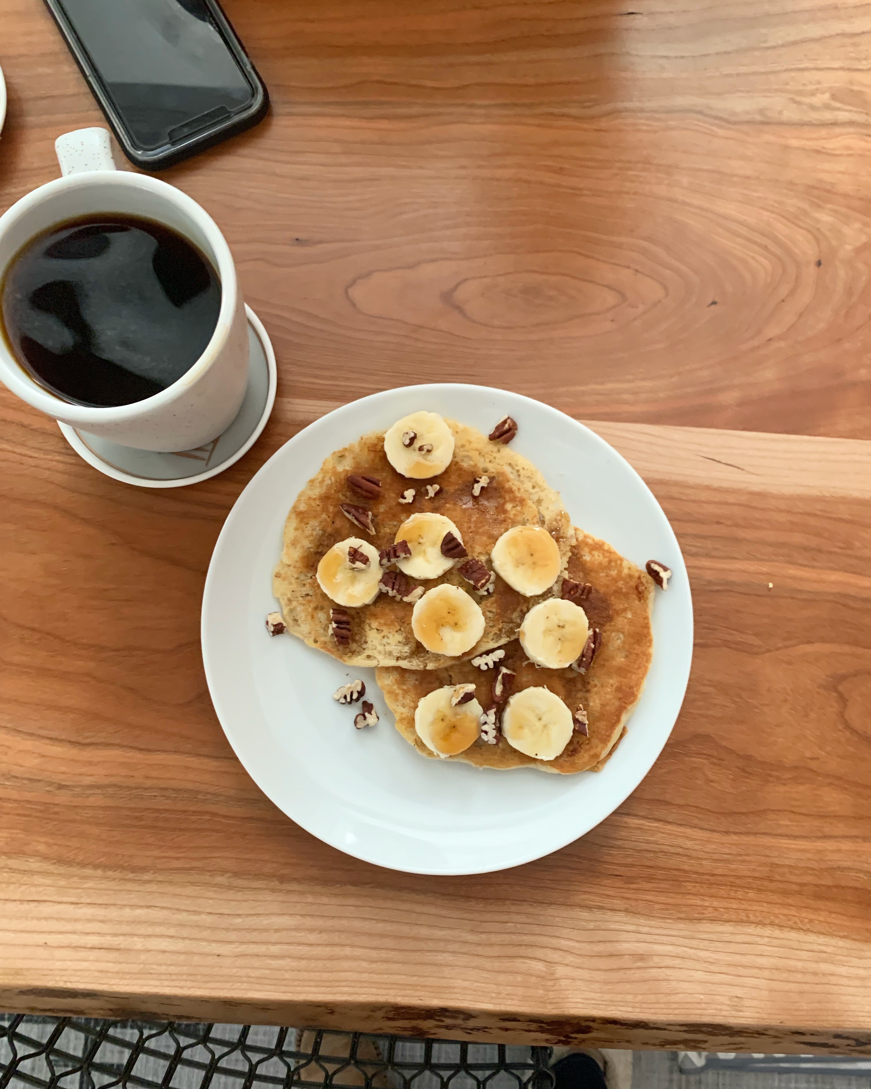 Demps seemed no worse for the wear in the morning but his parents were DRAGGING. Me specifically π I made Joey and I pancakes and hey, look! Our boy actually ate a little one so maybe his pancake strike is coming to an end! I got him that big boy cup with a straw at Target on Friday and he loooooves it!