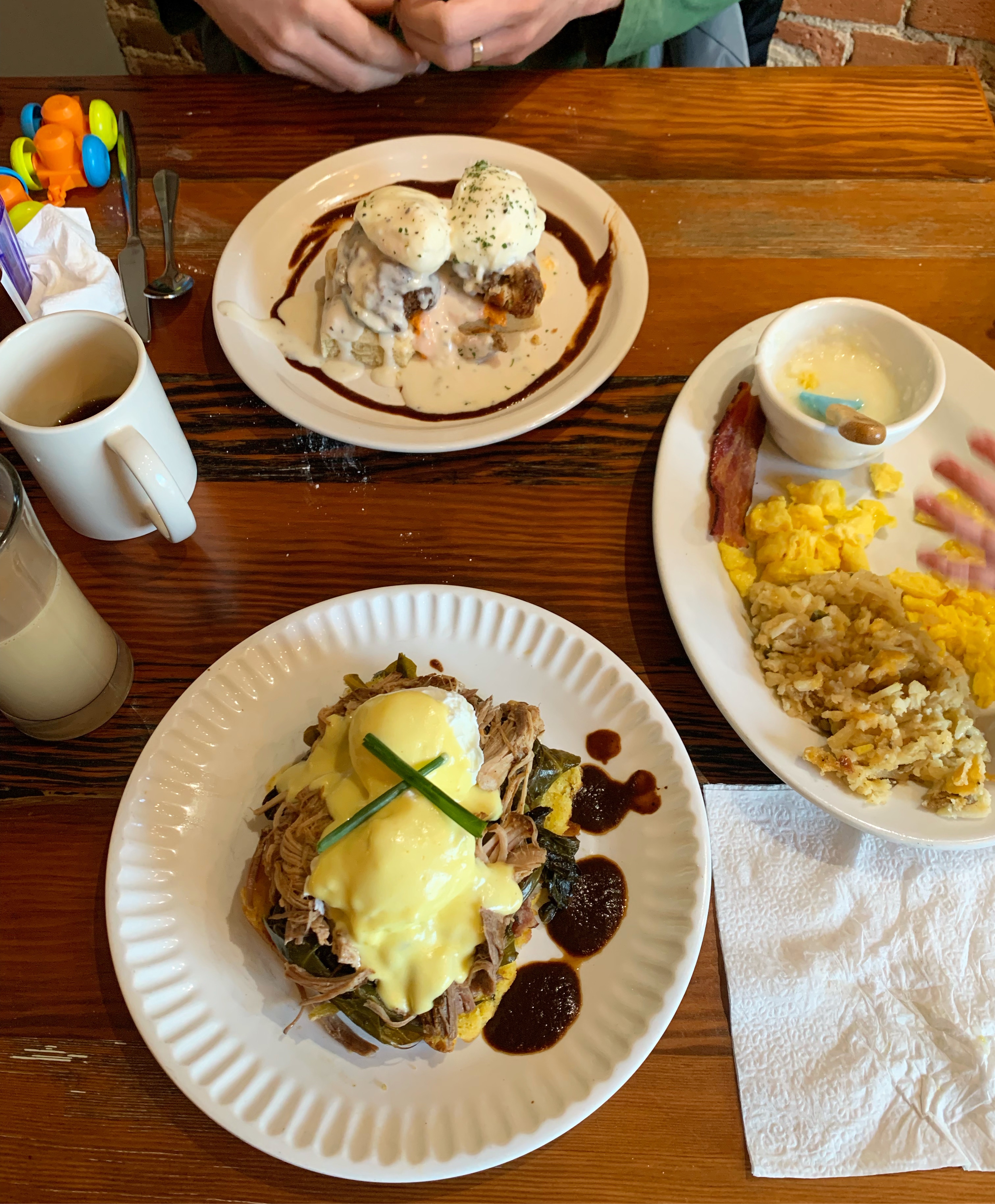 After a much better night of sleep on Saturday, Joey and I both woke up before Demps. He woke up a bit later and we headed to breakfast at Sassafras. That little boy loooooves beignets and grits! And Joey and I were pretty happy with our respective meals as well. I had an 11 AM facial and Joey and Dempsey had an errand to run at 10:30, so they headed out shortly before me. Since we would be out later at the Super Bowl party, we planned to push his nap back a bit but then he fell asleep in the car on that errand run π€·ββοΈ That book must’ve put him to sleep! π