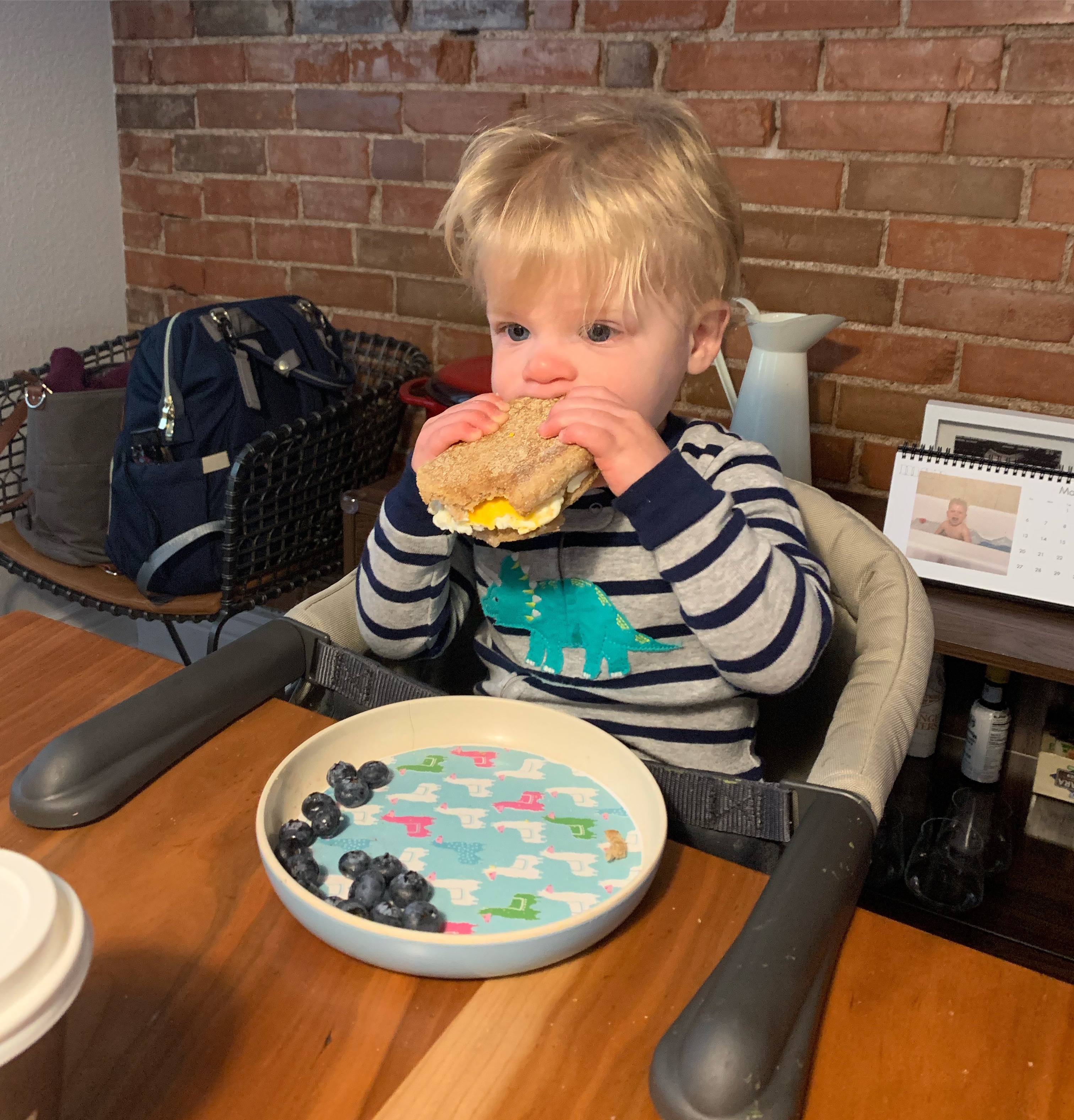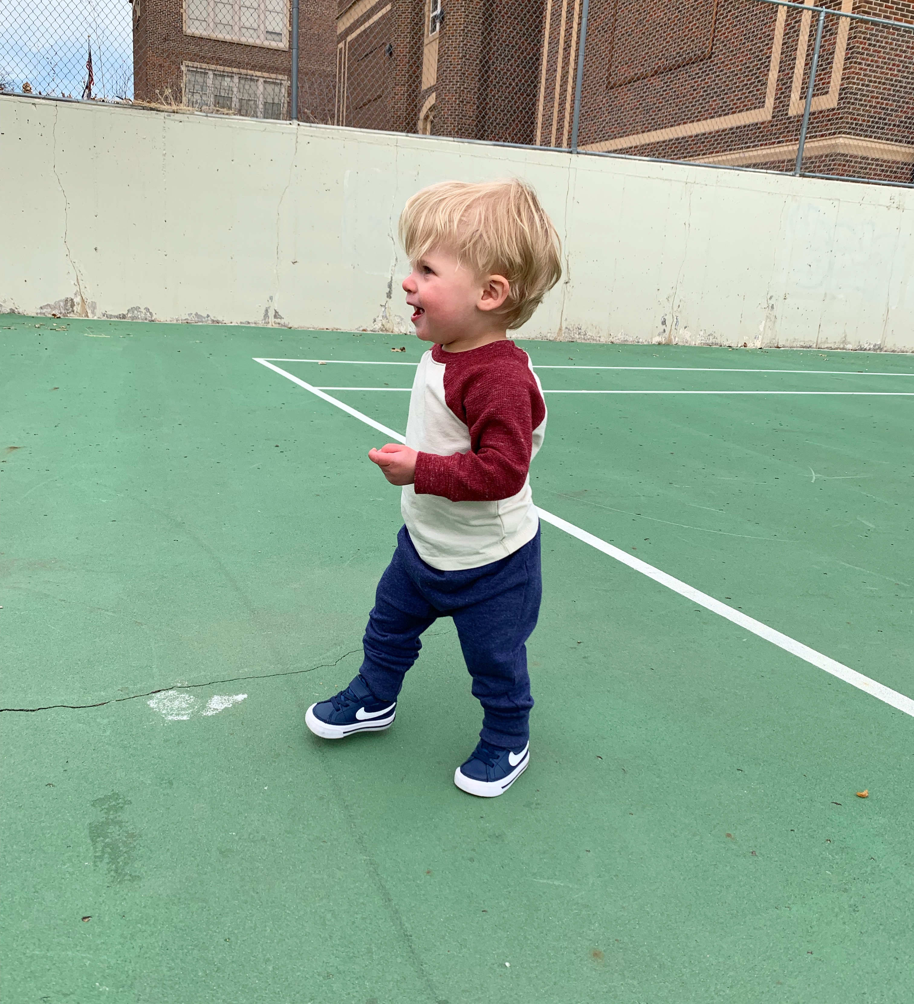 A super start to our Sunday! I went out and grabbed two iced coffees and one vanilla steamer and Joey and Dempsey stayed home and made us all egg sandwiches for breakfast. It’s my favorite thing when he holds a full sandwich π He was pretty good at holding it together too! Afterward, I made our lunch salads for the week and Joey started the first of a million loads of laundry, then I went on a run and we all walked over to the basketball court to play. We cut through the field at the school and it was so fun watching Dempsey run across! He mainly wanted to pick up two little rocks and throw them over and over, instead of playing with the basketball, but we had fun either way.