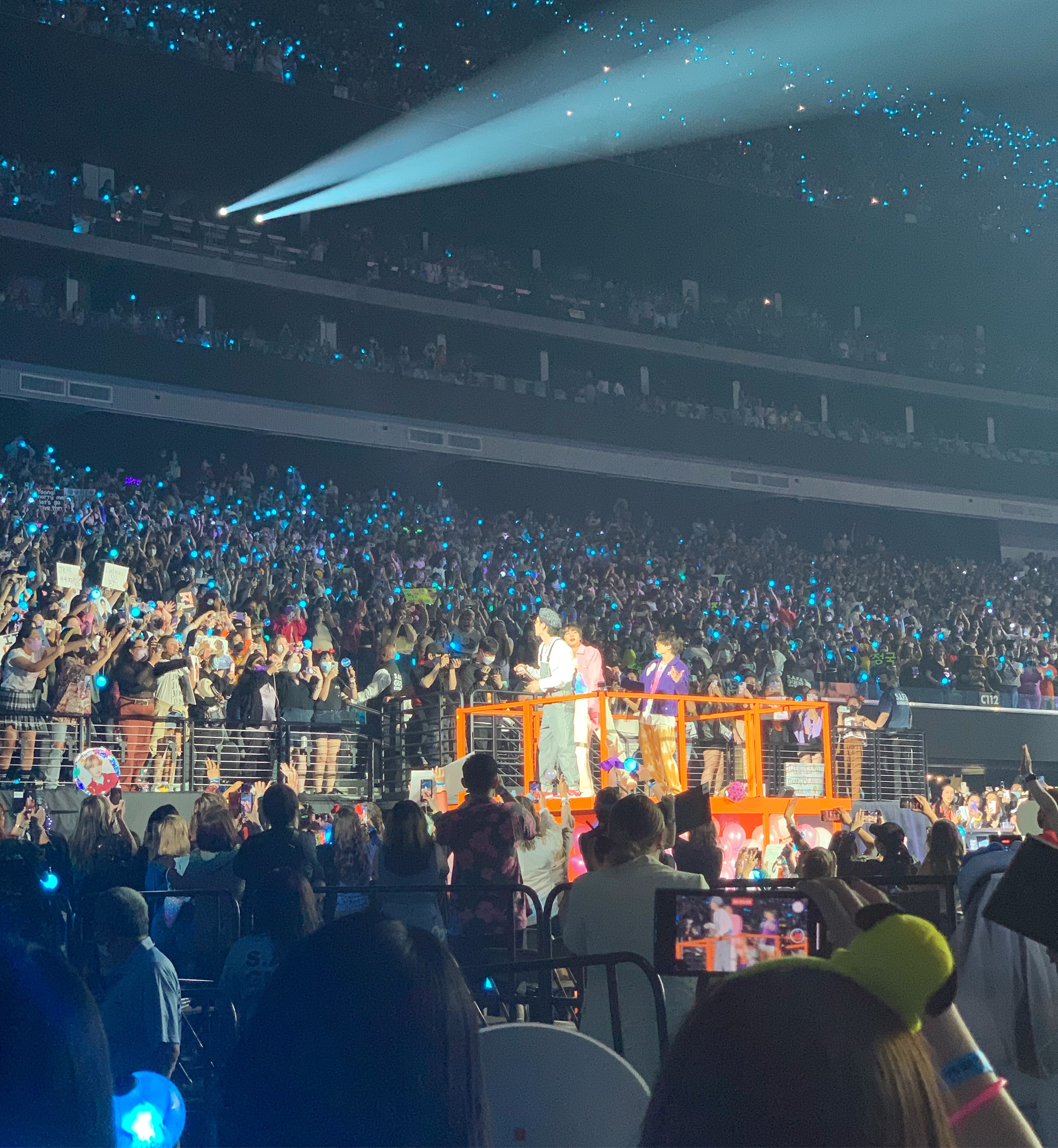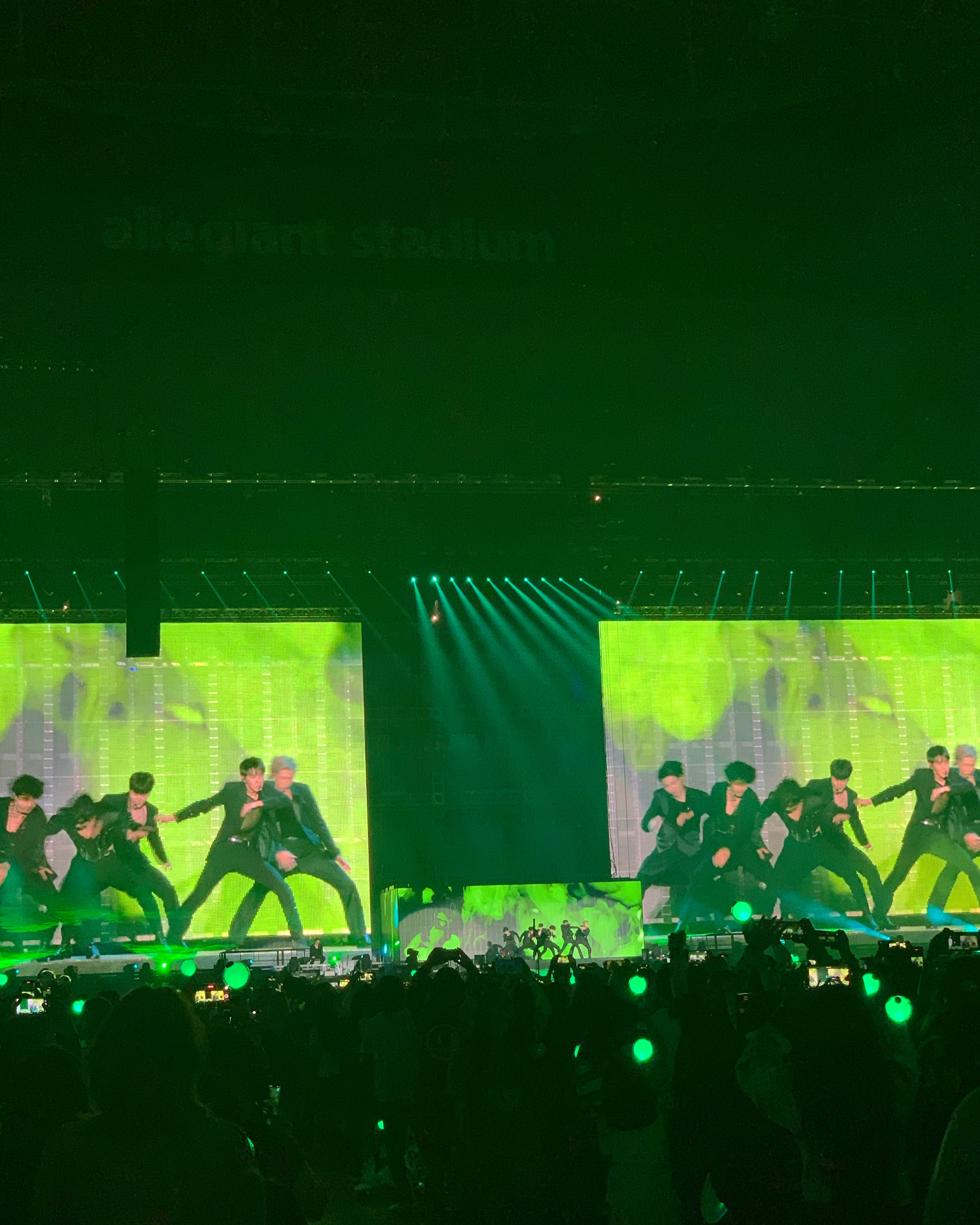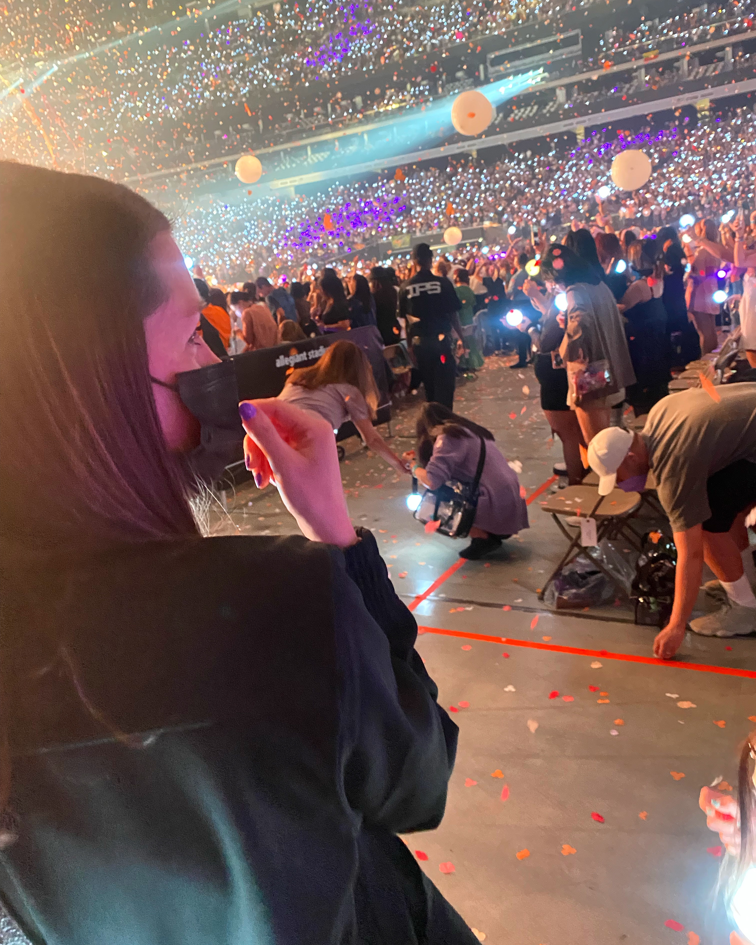 Over at Allegiant, it was time to get crazy in the best possible way! Doors opened at 4:30 and there were already so many people in line. We are nothing if not dedicated. Got to our seats at 5:15 for a 7:30 show and it was already bustling. They were playing BTS music videos (literally could not have been happier about it) and everyone was cheering so loud. I turned to Joey and said “and these are just music videos!!” It was fun people watching and checking out all the outfits. Everyone looked so good!!!! I was impressed.