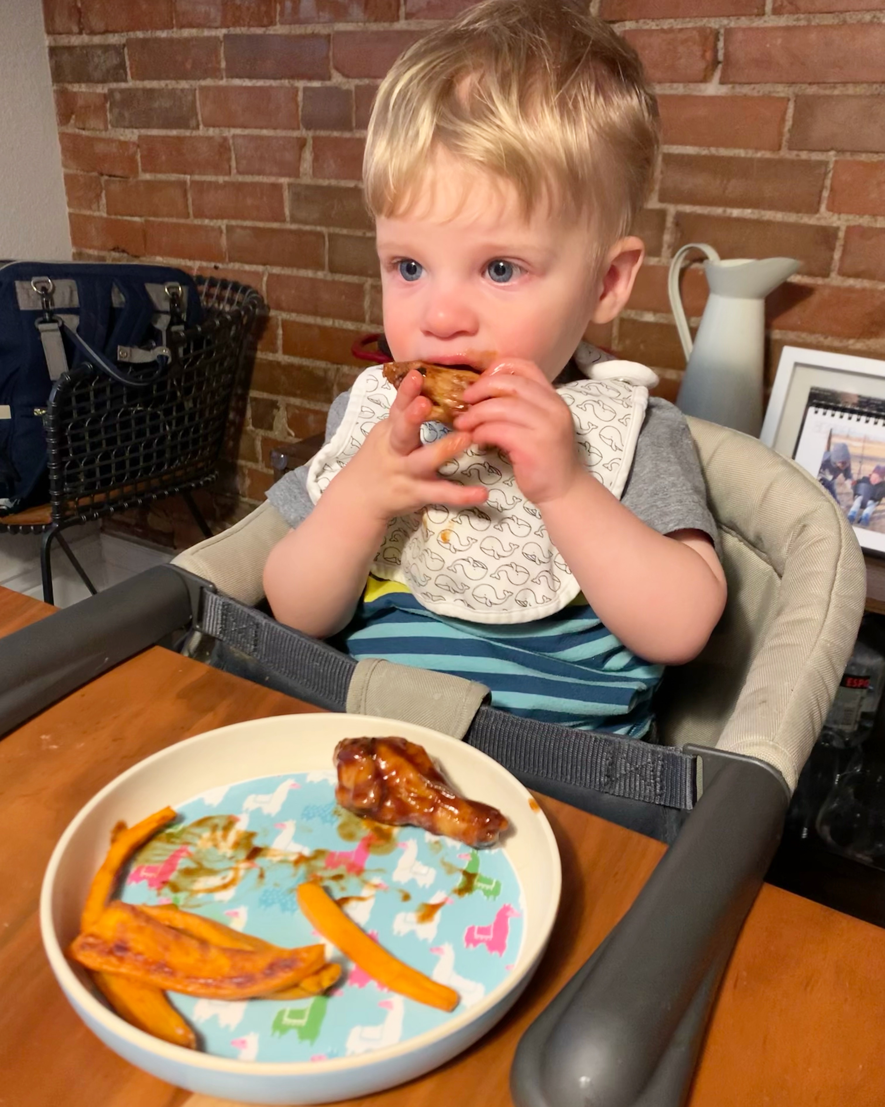Made wings for dinner and that Jamaican Jerk sauce my sis and Wayne got Joey for his birthday was tasting extra firey, but in a good way. Dempsey is getting so good at eating wings too! Mid-dinner we tried to practice winking with him and he was making thee funniest faces. We were laughing so hard. Hope you had a good weekend too!
