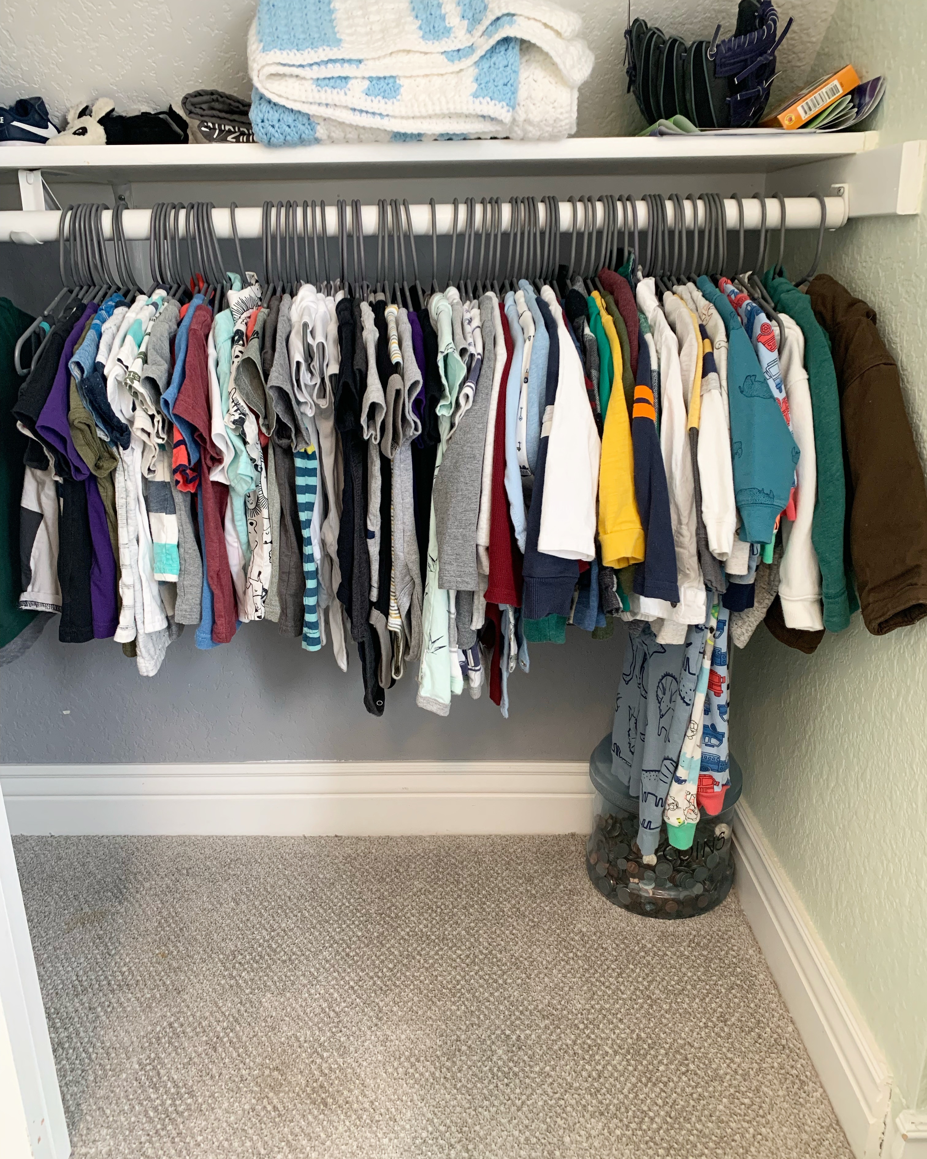 Who knows what we did all afternoon except that Dempsey’s new thing is to get out this bunny pillow and blanket and lay down with both and it’s the cutest thing. Joey also changed him into some “capris” (aka he rolled up his pants 😂) and I loved the look! Joey installed a new closet organization unit upstairs and a bookcase/shelving unit downstairs where we keep all of Dempsey’s toys and hopefully both help us out. Oh and I went and got a facial during nap time then came home and read for a bit. Gotta finish my book before tomorrow’s book club meeting!