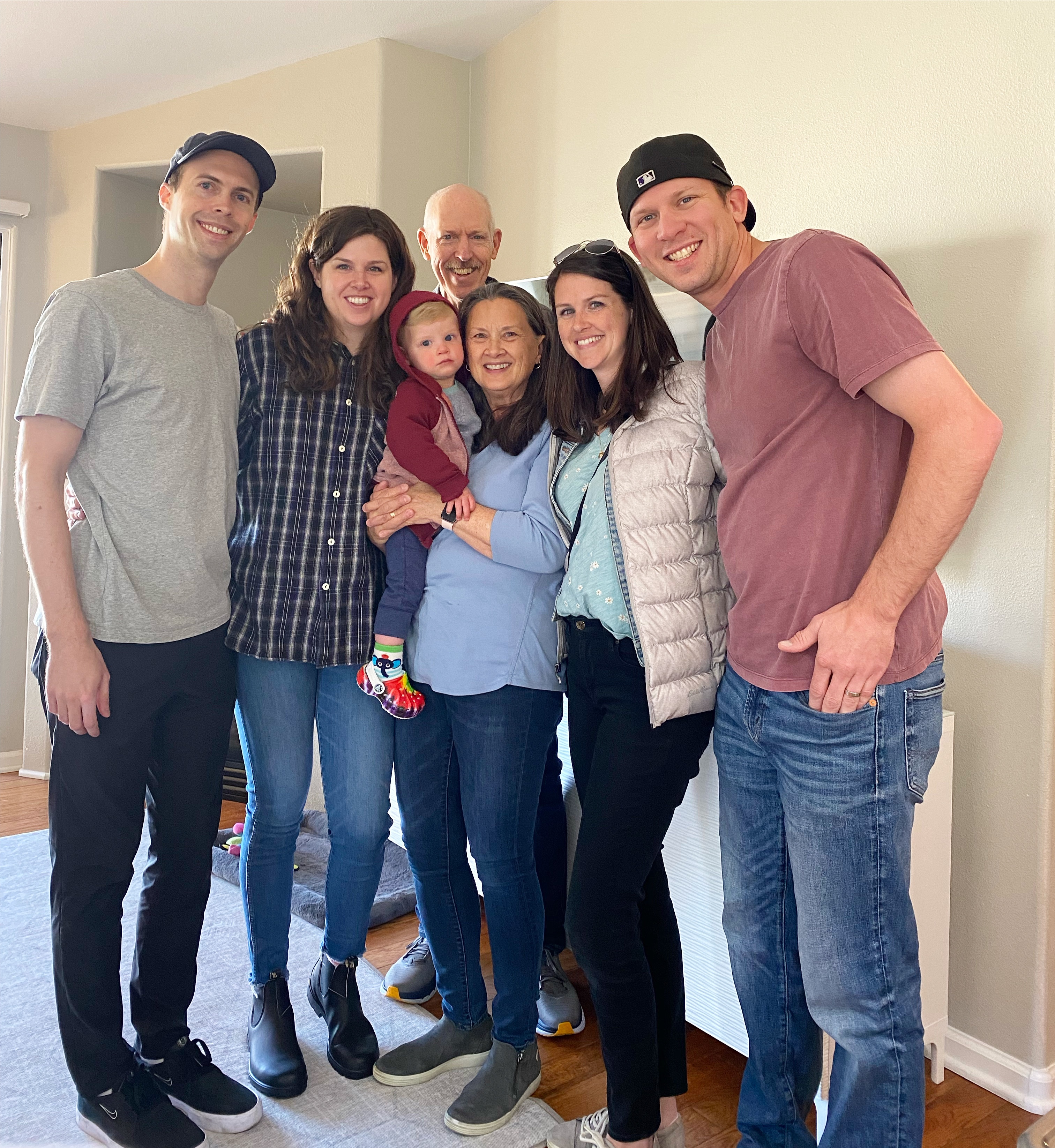 Over at my parents’, there was an amazing breakfast spread (Mom killed it!), an entire wheelbarrow of goodies for Dempsey, including the cutest little Crocs you’ve ever seen, and then I remembered to take a family photo at the last minute!