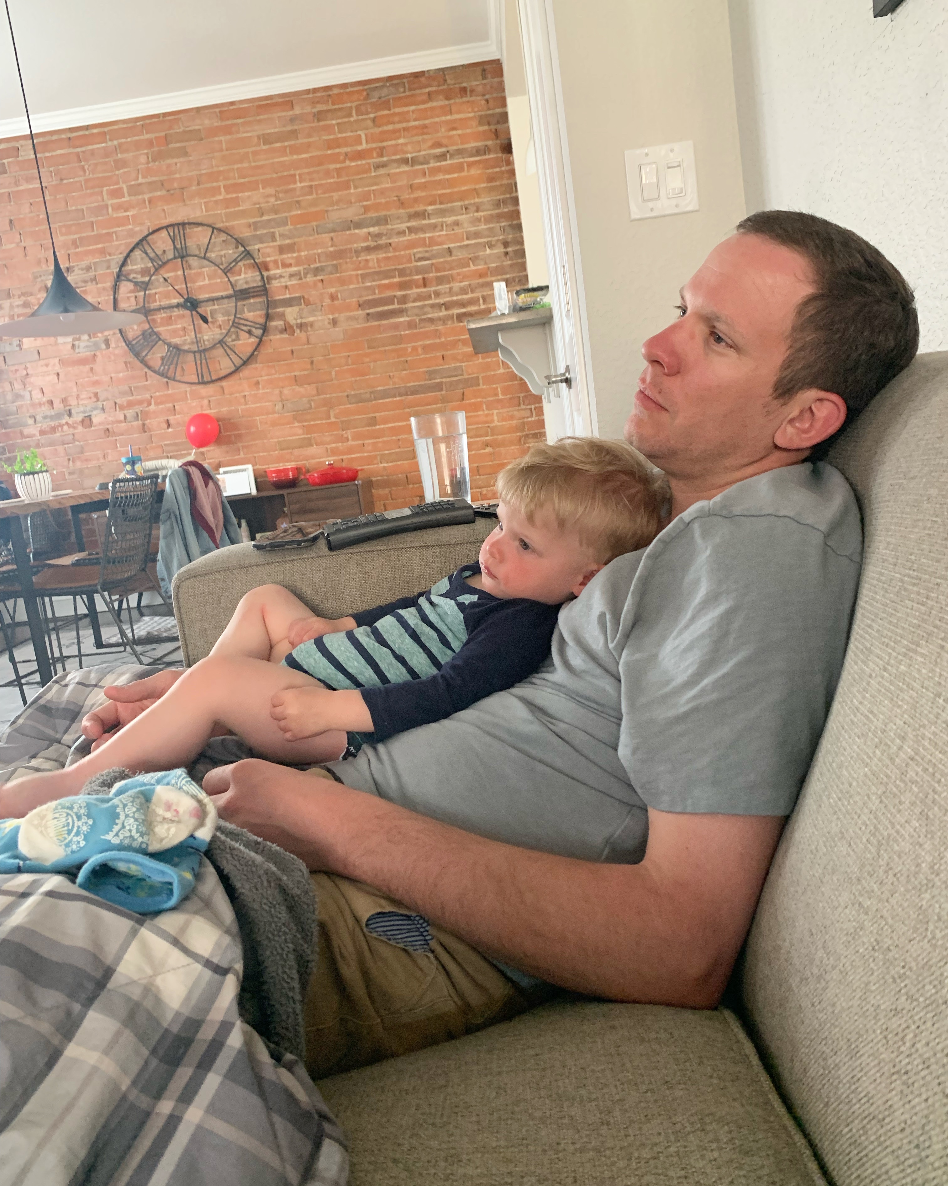 We hadn’t been to Onefold in so long, so we knew we wanted to go this weekend. We dined in again! Does Dempsey need his own $15 meal? Probably not, but we always just figure the leftovers will be another meal for one of us later in the week. He tried his best to pick up those quesadilla slices but they were HEFTY, so he ended up just opening it up and eating the inside. Smart! We debated a spontaneous trip to the Denver Aquarium but then remembered the 10 loads of laundry we had to do and headed back home.