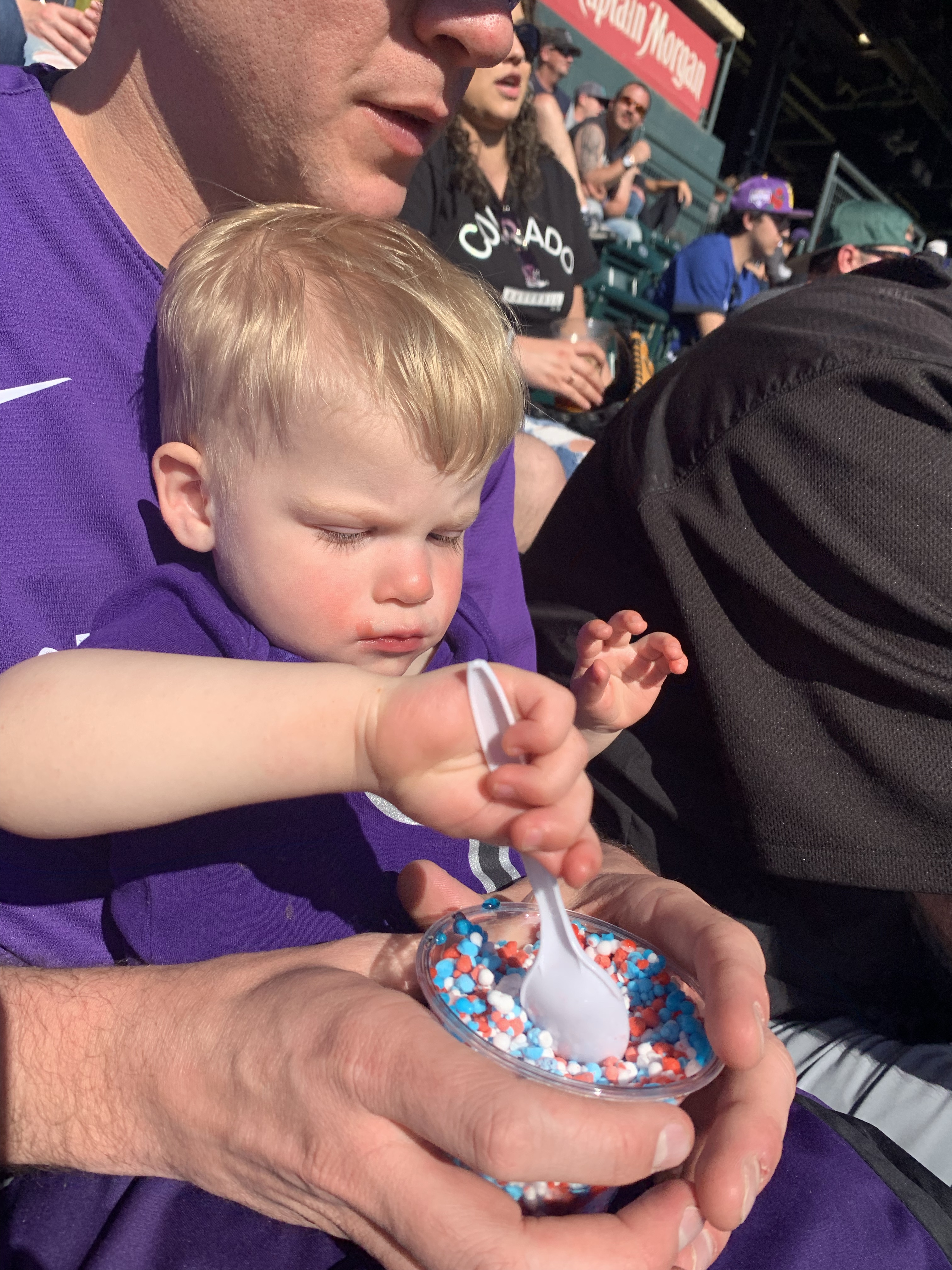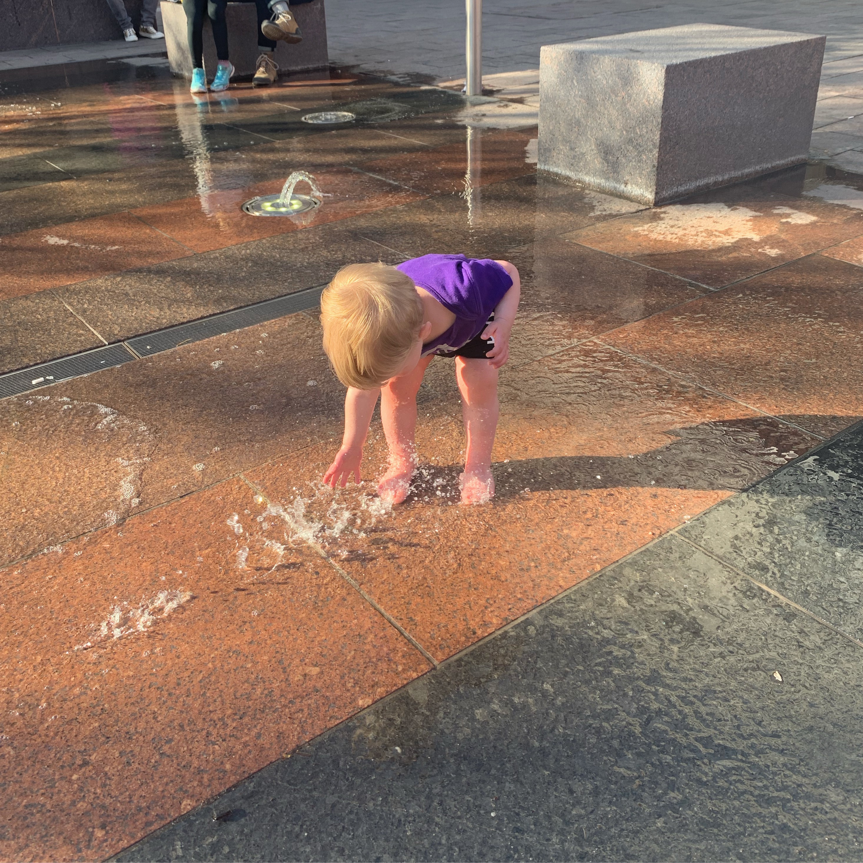 I thought life would be easier once Dempsey got down to one nap, but now that one nap is just smack dab in the middle of the day. We decided to just put him down an hour early and he fell right to sleep, easy peasy. Woke him up at 1 and flew out the door. We made it to our seats just in time for the game. And wouldn’t you know it, we made it through the entire game!!!! I guess the solution to keeping your toddler still for three hours is to just feed him the whole time 😂 Afterward, we walked back to the car by way of Union Station and had to stop and play in the fountain. Demps loved it!