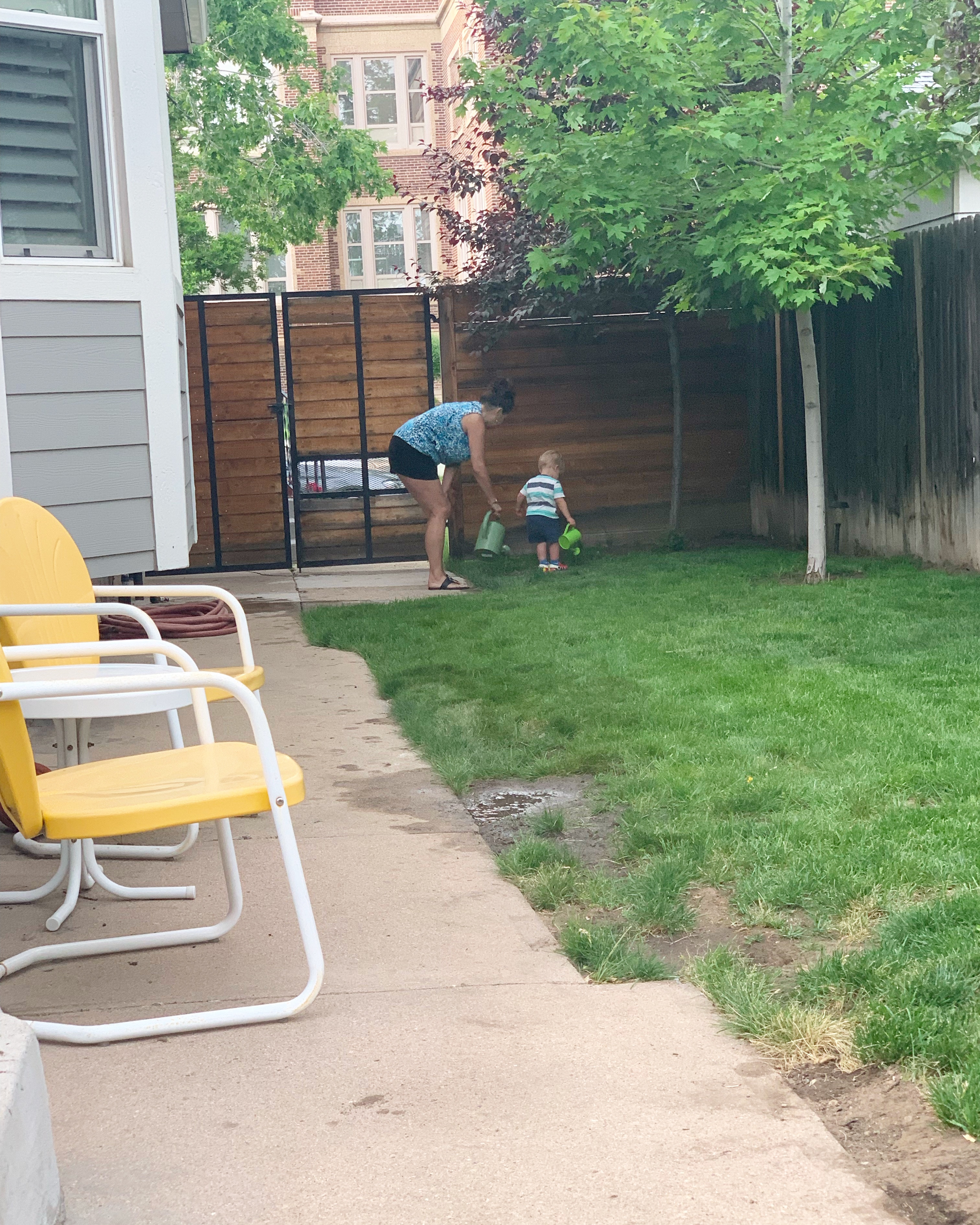 We took a post-pancake trip to Elliott Gardens on Saturday and got some Echinacea, strawberry plants, tomato plants and basil. Keeping it simple with the veggie garden this year and hoping squirrels do not destroy everything like they have the past two years. Steve and Lorna came over for dinner later on and Dempsey was putting them to work. He can refill a watering can and pour it into some dirt for hours on end π
