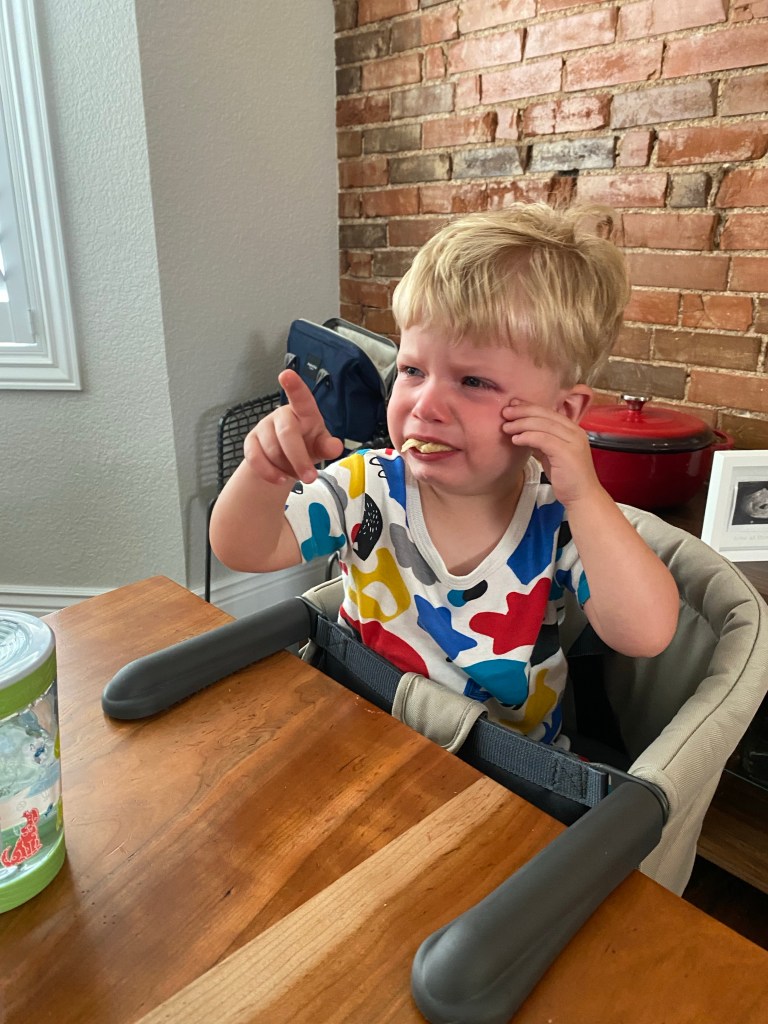 Just a Saturday morning meltdown, with a mouth full of waffle 😂 Trying to honor my toddler’s big feelings, but sometimes it’s really hard not to laugh. He was upset because we wouldn’t let him eat breakfast on the couch in front of the TV, a thing we never do anyway, but was very important to him right then. He got over it rather quickly and seemed to really like his whole wheat banana waffle. Took him to the library then the park afterward and he’s finally into going down the slide! Love his little “wee!” as he goes down ❤