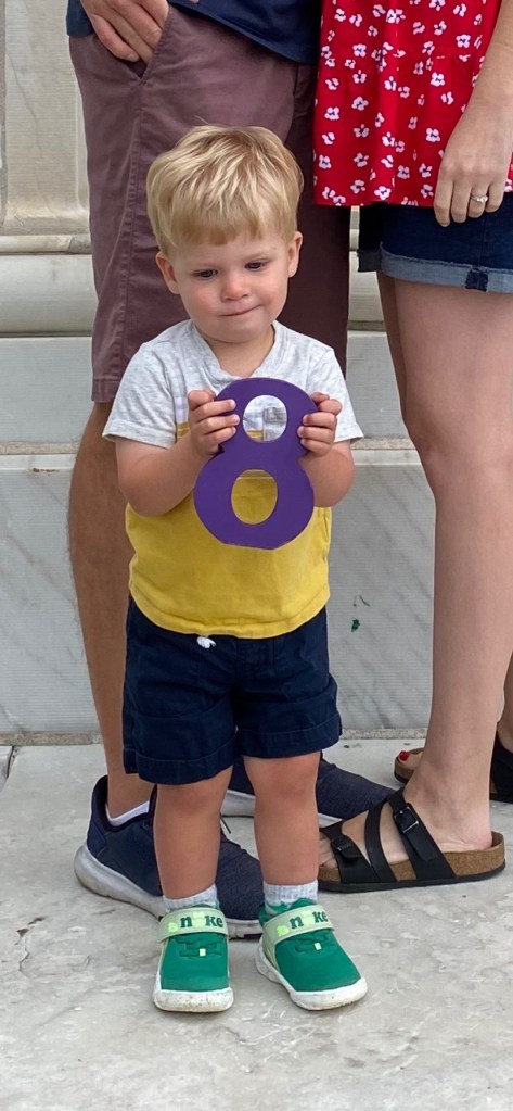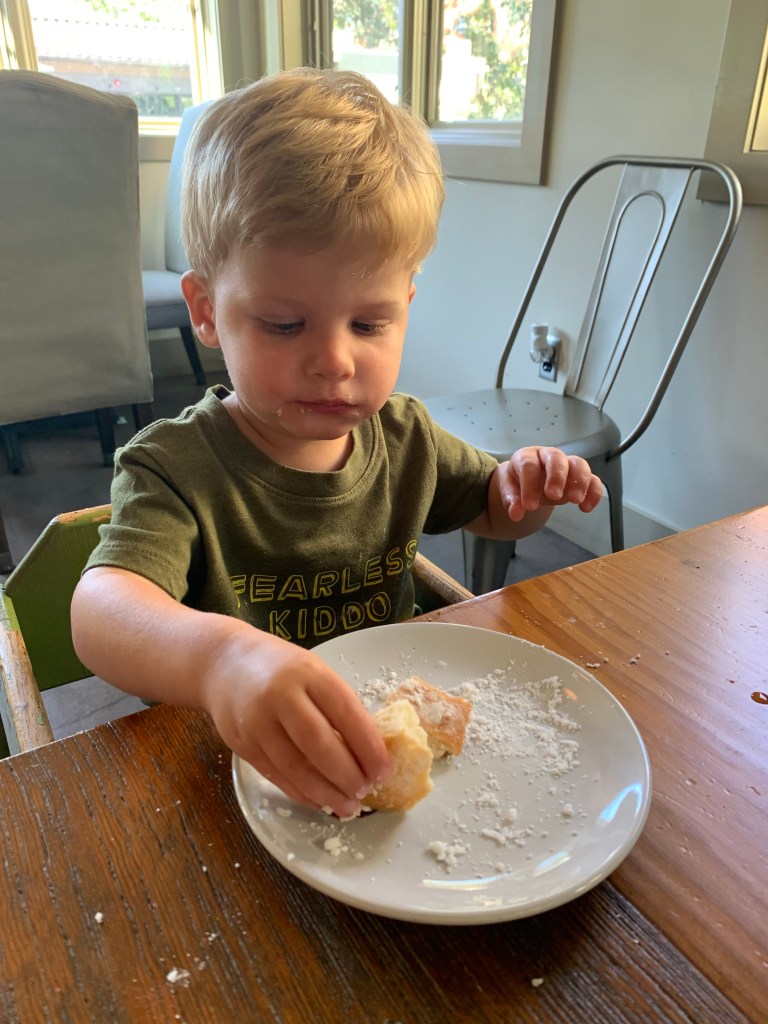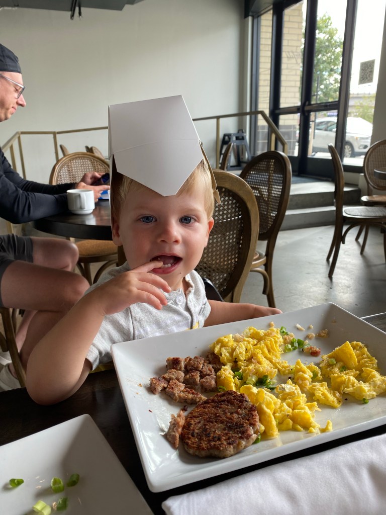 A sort of busy little Sunday. We bribed my sister and Wayne into taking our yearly anniversary picture with breakfast and would you look at that little face?? We gave Dempsey that number and he proudly pronounced “EIGHT!” If only he knew four through seven 😂 Hit up Onefold afterward and it was so good, as always! Joey had his golf clubs stolen last week 😢 so he dropped me off at home, then took Demps to buy a new putter. Looks like Dempsey got some practice in as well 😋 Meanwhile, I started lunch salads, laundry and some pickled strawberries before sitting down to read for a bit. Once the boys were home, we gave Demps lunch and put him down for his nap before I left to get my hair cut. Post-nap and haircut, I made a goat cheese, pickled strawberry, honey toast that Joey wanted no part of but Dempsey and I enjoyed. Leftovers for dinner, easy peasy, then bathtime and bedtime for Dempsey and Big Brother time for Joey and I.