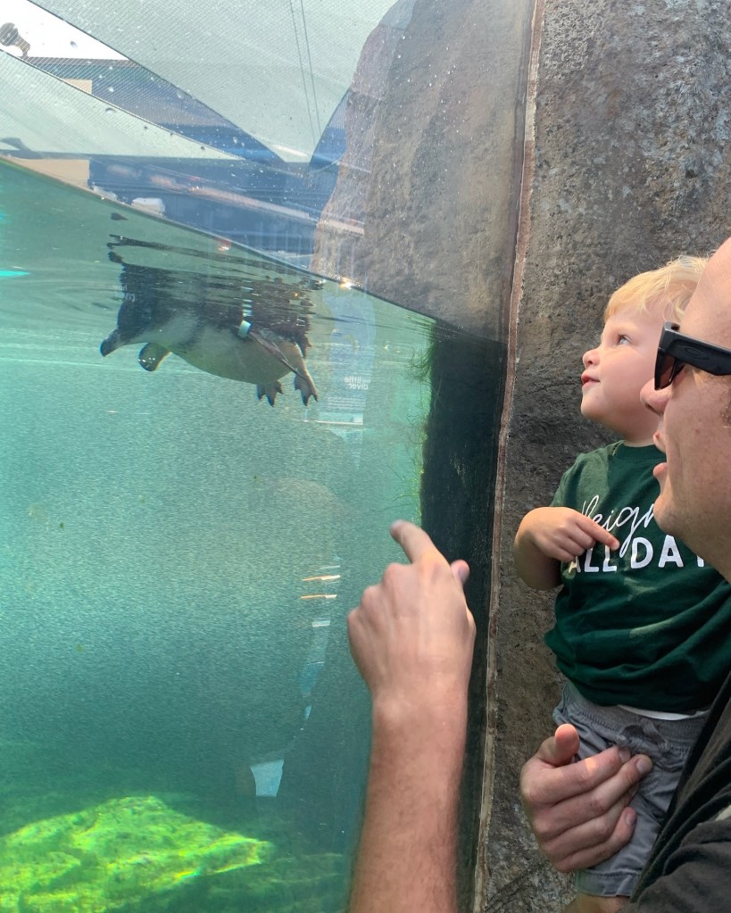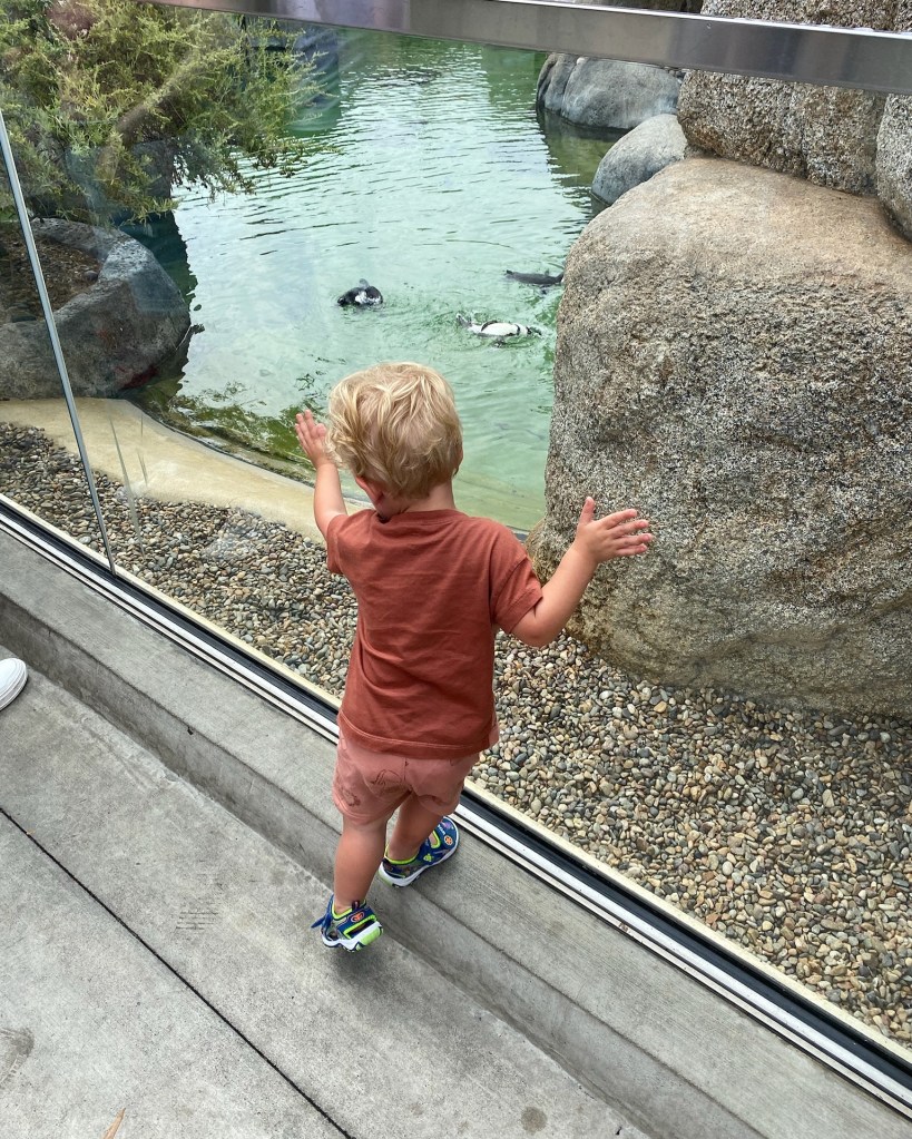 Tuesday was Joey and I’s EIGHTH wedding anniversary! I’m just telling people we’ve been together since we were born at this point 😂 There will be plenty of years to celebrate as just the two of us, so it was nice having Dempsey with us for this one ❤ Started things off with breakfast at Claire’s on Cedros. Definitely a cute spot, but I didn’t love my frittata. Joey’s chilaquiles tasted much better though, so I said I’d be willing to try it again. Dempsey is just happy to go anywhere that has pancakes and eggs. Afterward, we loaded up in the car and drove to the Birch Aquarium in La Jolla. Wow, La Jolla is beautiful, huh?? The star of the show is definitely the Little Blue Penguins, so we popped into that exhibit twice and I’m so glad because the second time around, we actually saw them jumping into and swimming around in the water. They were so cute and only like a foot tall! I think Dempsey was having more fun running up and down the ramp, but he did like when they swam by. We also saw sharks, stingrays, a sea dragon (who knew that was even a thing??) and learned too much about seahorses. There were some open air exhibits outside where you could touch some sea creatures and I think Dempsey really liked feeling the anemone! Afterward, we grabbed lunch at Shore Rider and I don’t think I need to tell you what I ordered 🥗 but know that it was really good. When we got that little boy home, he just played around in his Pack N Play for an hour before we decided to pop him back in the car and drive up the coast. He ended up falling asleep pretty quickly, so he got some kind of nap in. We had dinner reservations at Cucina Enoteca in Del Mar and we weren’t sure how we felt about being sat outside literally by ourselves, until another couple (with another pregnant lady!) joined us, but actually it made for a pretty peaceful dinner, so we’ll take it. Dempsey loves bread and burrata as much as we do! And the pasta dishes we all shared were amazing. Ordered tiramisu for dinner and, in an attempt to not have our toddler eating espresso and amaretto, we got him his own sundae but then he kept trying to make us eat his sundae and reaching for our tiramisu 😂 It was a really good night!