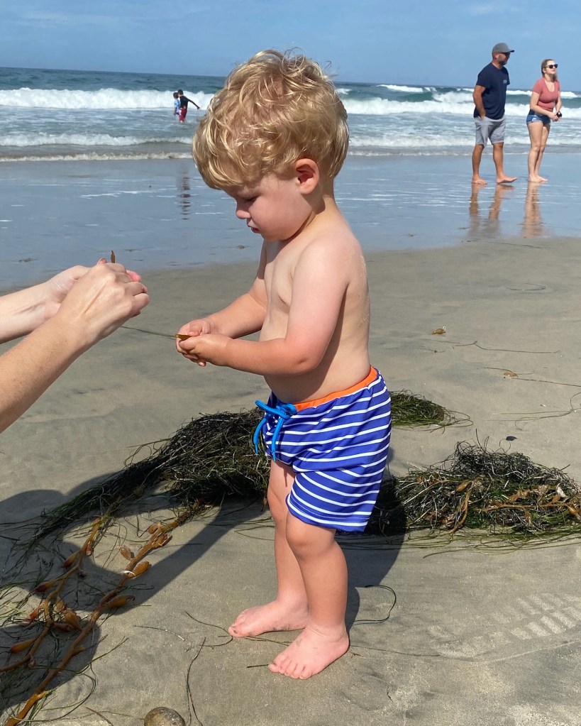Very unlike me, but I had NOTHING planned for this vacation. We thought we might take a trip to the San Diego Zoo and we had purposely booked an Airbnb very close to the beach, but otherwise, we did zero research and didn’t even start looking at restaurants in the area until the night before. Felt really good, honestly. We fell into a pattern of waking up, grabbing breakfast, hitting the beach, eating lunch, putting Demps down for a nap and either reading or napping ourselves, then randomly filling time till dinner. It was so nice! Started our first full day there with breakfast at Lofty Coffee, which is my favorite kind of coffee shop, meaning it does good coffee AND good food. Then we walked over to the beach, with too much stuff and quickly learned how to minimize for the rest of the trip. Dempsey’s first time seeing the ocean! I posted a video of his reaction, but he was none too pleased when that water hit his feet. He was happy to have us hold him while we stood in the water or play in the sand though and he liked popping the seaweed too! I had randomly seen that there was a Solana Beach Farmers’ Market open on Sundays from 12-4, so after beach time, we headed over and grabbed lunch + some fresh California fruit, then headed back “home” to eat and put Demps down for his nap. He was wiped and fell asleep real fast. We walked over to ALCE 101 Kitchen + Tequileria for dinner that night and Dempsey was very into the cornbread appetizer! The plates of food they serve are seriously huge!!!! And good too 😀 I think this was the night Joey and I also started Elvis and no joke, it took us the rest of the trip to finish it. It’s very bad, folks.