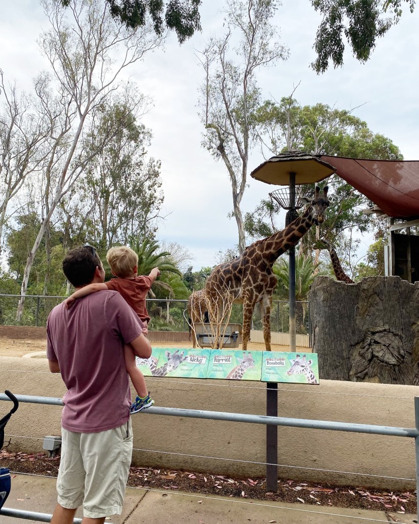 We had floated the idea of going to the San Diego Zoo and almost didn’t go through with it but I’m so glad we did, because it ended up being our favorite thing we did on this vacation! Ate a quick breakfast at home, grabbed coffee at Achilles again and hit the road, so we could be there right when the zoo opened and I think we made a wise choice. It was cool, cloudy and crowd-less! And what an amazing zoo! It’s big, so we did LOTS of walking (and sweating), but it’s very jungle-y in there, meaning lots of shade and we saw so many cool animals! A baby orangutan, a lion, lots of bears, the sleepiest koalas, elephants, giraffes, cheetahs so close it felt like you could’ve touched them, a honey badger that it’s apparently very rare to see, hippos and my personal favorite, the red panda! Definitely worth how swollen my feet and ankles were afterward 😂 For dinner, we headed to a brewery we’d been wanting to try. We felt very fancy getting valet parking until we saw our Nissan rental next to a Tesla and a Mercedes 😂 Joey said the beer was just okay but the food was really great! Dempsey mostly wanted to look at the lagoon but sat still long enough for us to eat dinner.