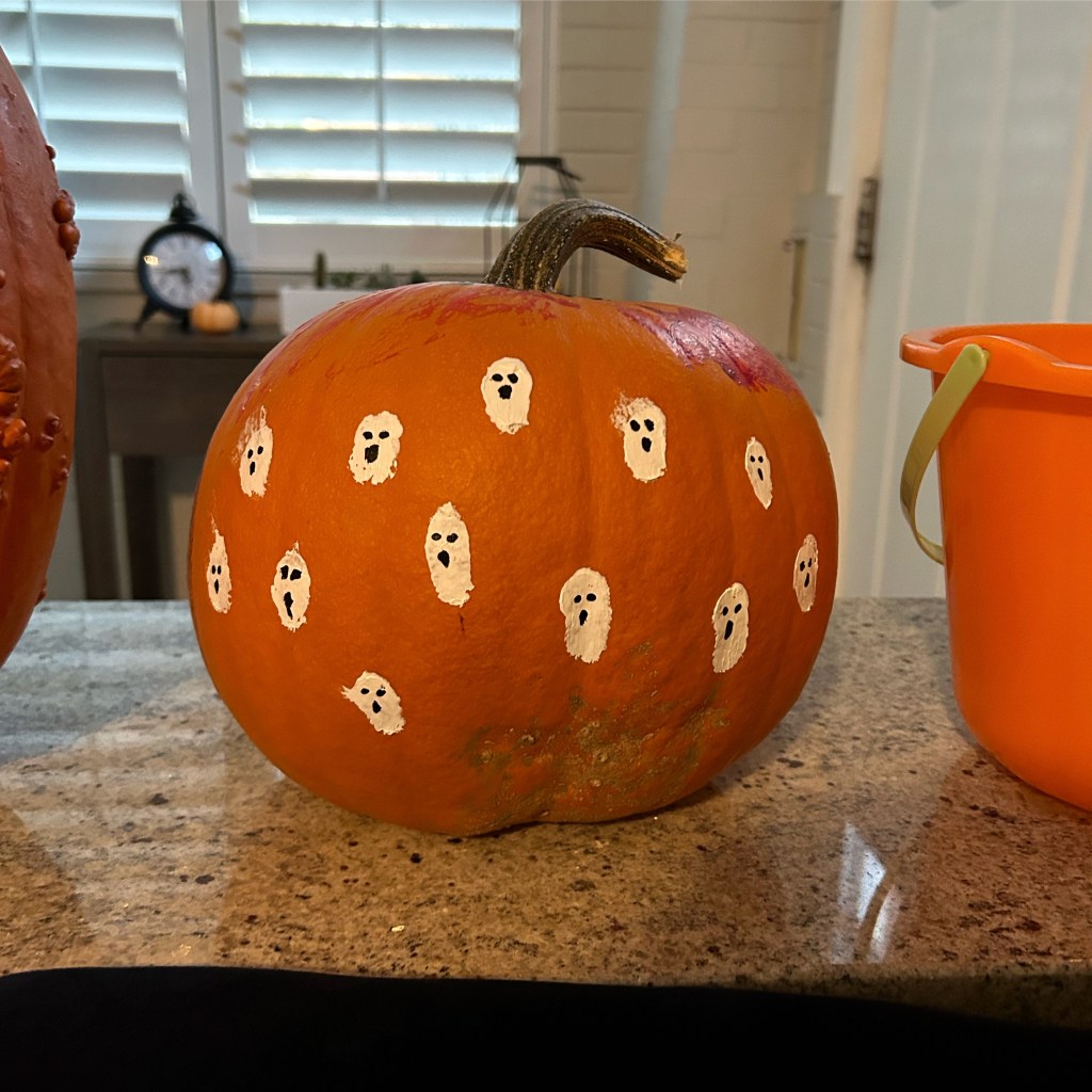 Started Sunday with breakfast at Snooze. We ordered a pumpkin pecan pancake for us all to share and Dempsey was a big fan of the candied pecans! Back at home, we started our usual Sunday chores and then I left the boys in their Cowboys jerseys to watch the game while I got a haircut. When I got back home, I got to work on salads for the week and Joey moved all Dempsey’s play stuff to our spare bedroom and all of our office stuff to the front area of the house. Now we can just close the door on our toy mess😂 He also moved our treadmill to the basement and I was horrified when he told me how he did it 😱 Once Dempsey was up from his nap, we carved/painted pumpkins! Joey made us some really good apricot chicken for dinner and after bath/bedtime for Demps, we watched the first episode of The White Lotus. I missed Jennifer Coolidge 😋