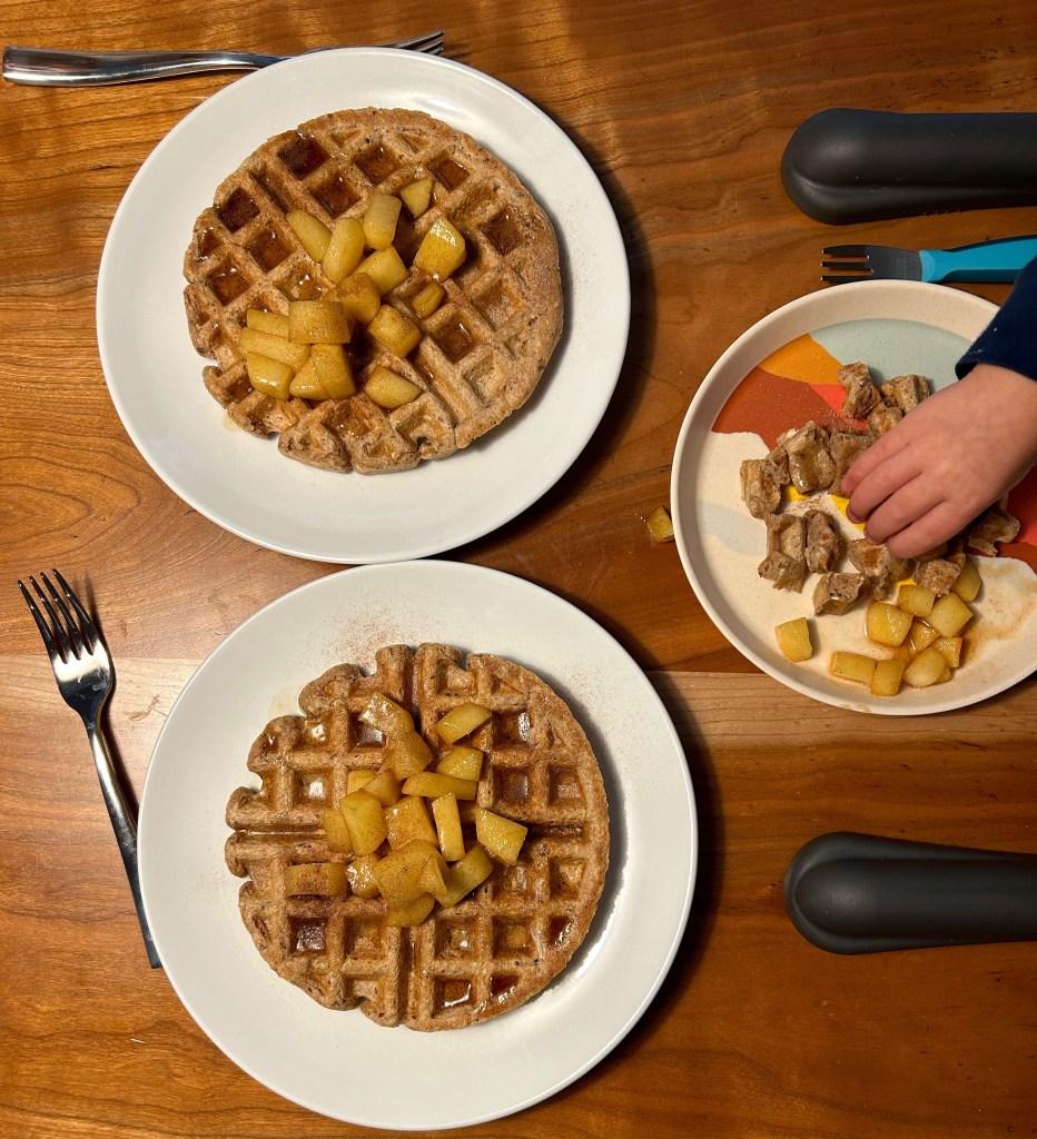 Started Sunday with some cinnamon apple waffles. They were vegan and good thing because Dempsey would not keep his little fingers out of the batter 😂 After breakfast, we were really productive and cleaned out Dempsey’s closet, got out all my colder weather maternity clothes, cleaned our humidifiers and did some laundry. Felt good! My mom came over at 11:45, so Joey and I could go see a movie. We saw Don’t Worry Darling and it looks good and Florence Pugh is amazing as usual but I just had A LOT of unanswered questions at the end, and not the kind you could figure out if you just think hard enough, just gaping plot holes and things that did not make sense. Oh well, at least there was Chris Pine in that crop top. Back at home, we made salads for the rest of the week, started dinner and tried to keep Dempsey entertained. Our chicken and rice took a lot longer than the recipe said but then it tasted so good that I forgot all about that annoyance. Put our boy to bed and finished up season two of Hacks, which is just such a good show. I liked how this season ended so much that I wished it was the series finale but I don’t think it will be. Hope your weekend was nice!
