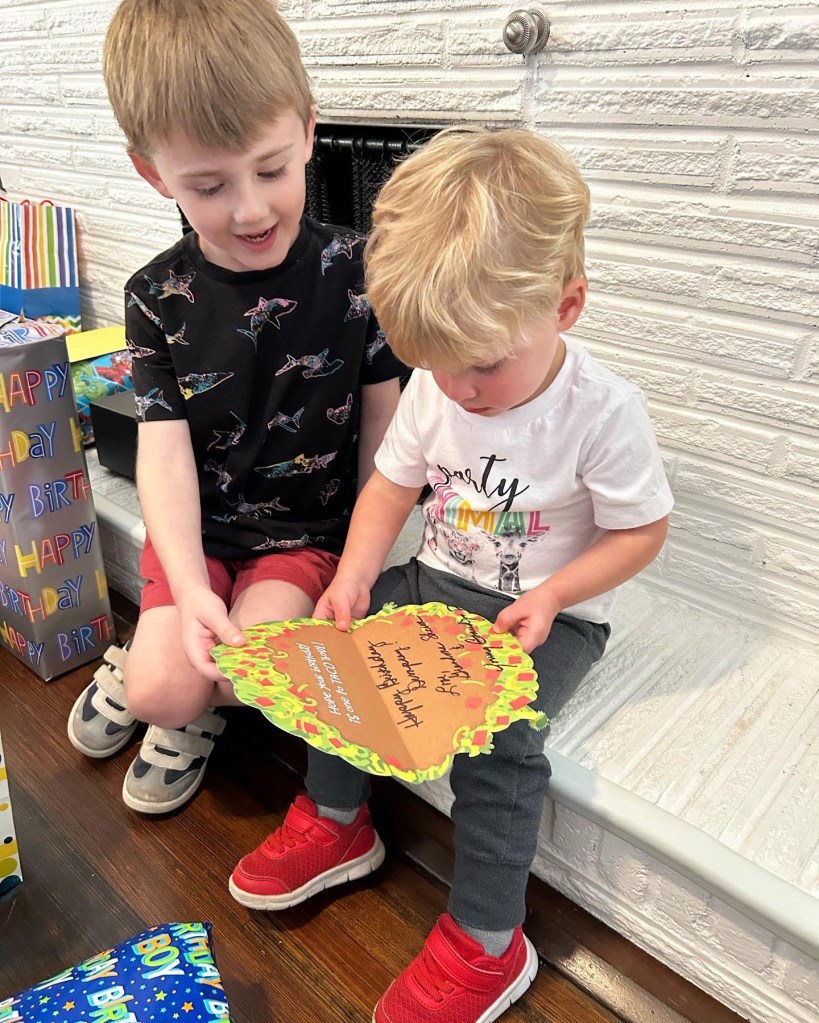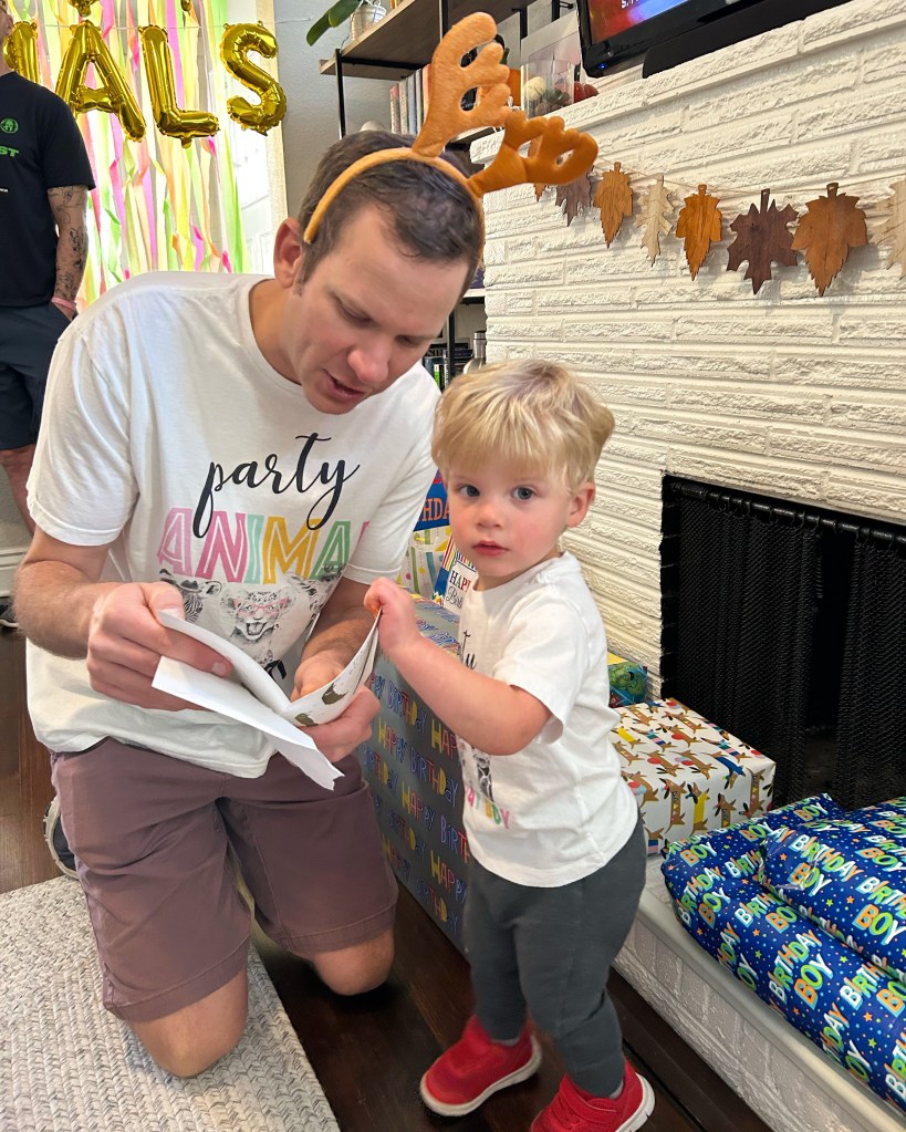Last year’s party with all the friends and all the family was so fun and I would do it again for a first birthday, but it was pretty nice just having immediate family and a few close friends right there at our house this year š¤ Probably less overwhelming for Dempsey too. He got some really good gifts and Mason was so good at helping him open everything. Henry was pretty good at helping him eat his cake too š