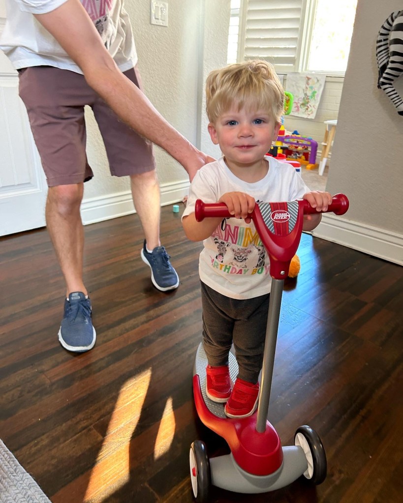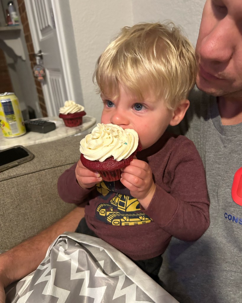 Thursday was his actual birthday and he was so excited when he woke up to us saying “Happy Birthday!” Joey and I are both in the office on Thursdays, so we gave him his presents in the morning and even though he got a mini trampoline, a CeeDee Lamb jersey and a book, he was mostly excited about that giant number 2 balloon š He was with my parents for the day, but when we got home, we had tamales and watched Coco. And, every child’s favorite treat, eating dinner on the couch! We paused halfway through to sing “Happy Birthday” and blow out the candles on a red velvet cupcake and then twenty minutes later we paused to do it again š He felt really warm but no fever that night and fell asleep in about 30 seconds, a surefire sign something wasn’t right ā¹