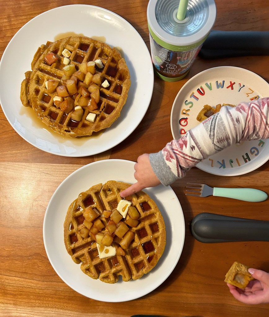Demps was up early Saturday morning but Joey was up even earlier (his viewing of The Blair Witch Project had to be cut short 😂), so the boys hung out so I could sleep a little longer and then when I got up, they had already started making waffles 🥰 Dempsey is forever asking for “a little bite of butter” so that’s what he’s doing in that first picture. Afterward, Joey got to work fixing our upstairs baby gate which came out of the wall last week. Dempsey loves to help! Took a trip to the coffee shop, then Ace then the library afterward then lunch and a nap for Dempsey, while we watched GBBO and then I started a new book that I’m already really liking!