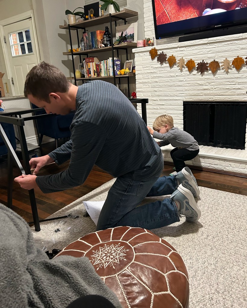 Friday started with that pretty mani I got from the gal my sis has been going to. Not only did she help me pick such a good color but she filed my nails into the prettiest shape. I can’t stop looking at them 😍 Later that afternoon, Joey and I headed out to my 34 week prenatal appointment. My doctor did an ultrasound to check baby’s position and… SHE IS HEAD DOWN! Cannot tell you how relieved I feel. I was euphoric for the rest of the day! Also, we saw her hair floating around in the amniotic fluid and I cannot wait to see it when she is born. We had an otherwise quiet rest of the day. Joey and Dempsey put together the new desk for our at-home office space and I cannot get over these two look-a-likes! ❤