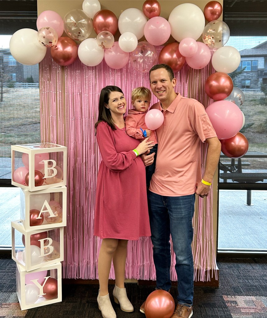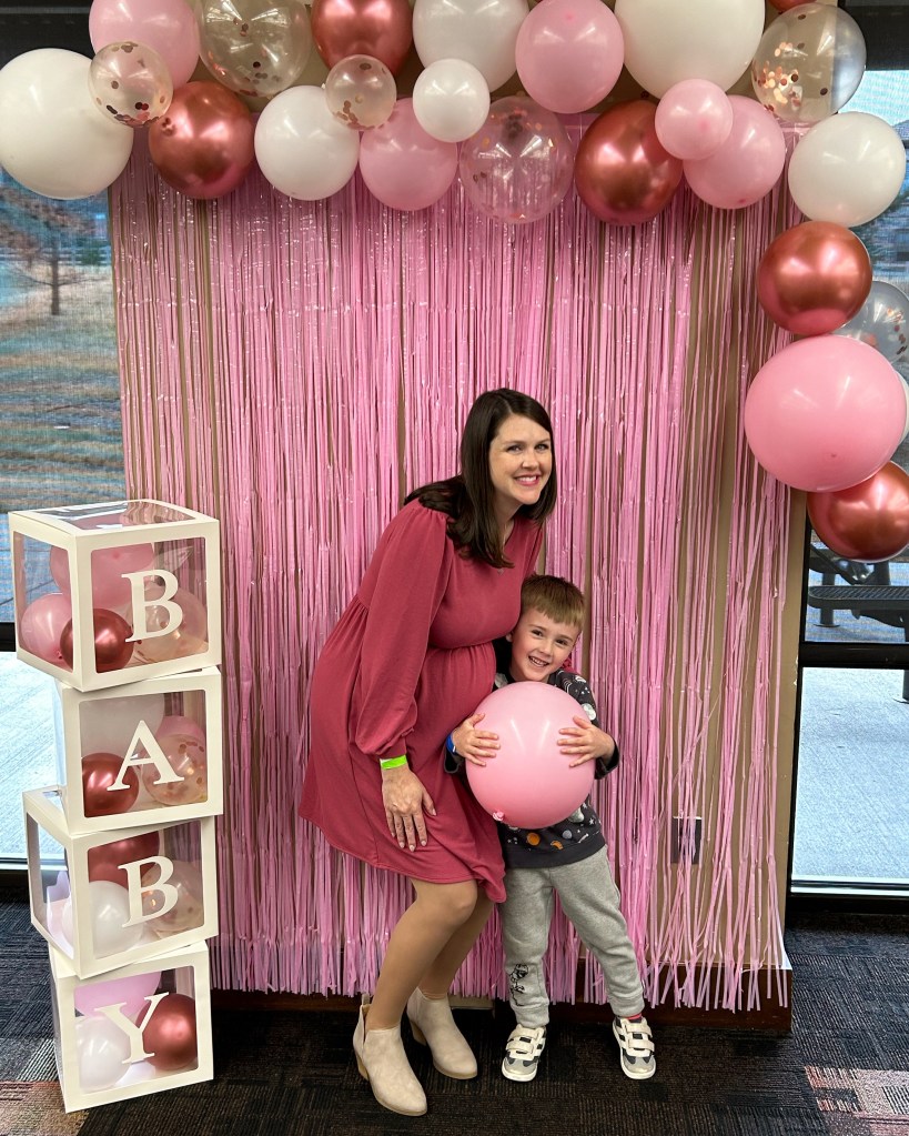 Sunday was our sprinkle! Not going to lie, it was pretty nice to just be a guest and show up a few minutes in advance. Lori, my mom, my sister and Lauren did such an amazing job decorating the space and putting out food and games for everyone. We loved everything! Oh and my mom gave me that beautiful “sprinkle” necklace last week. I love it so much 🥰 I definitely requested that cute picture backdrop then took all of three photos in front of it. Joey and I were so mad at ourselves for not making all the guests pose with us. What were we thinking?? At least Mason and I got one together 😂❤ Otherwise, a perfect celebration! I’m never not blown away by the diaper cakes my mother-in-law puts together!!! It’s one thing to make those in the days of Pinterest, but she’s been making them a lot longer than Pinterest has been around. This one was just amazing! And we got thee cutest stuff from everyone else for baby girl. She is already so loved ❤