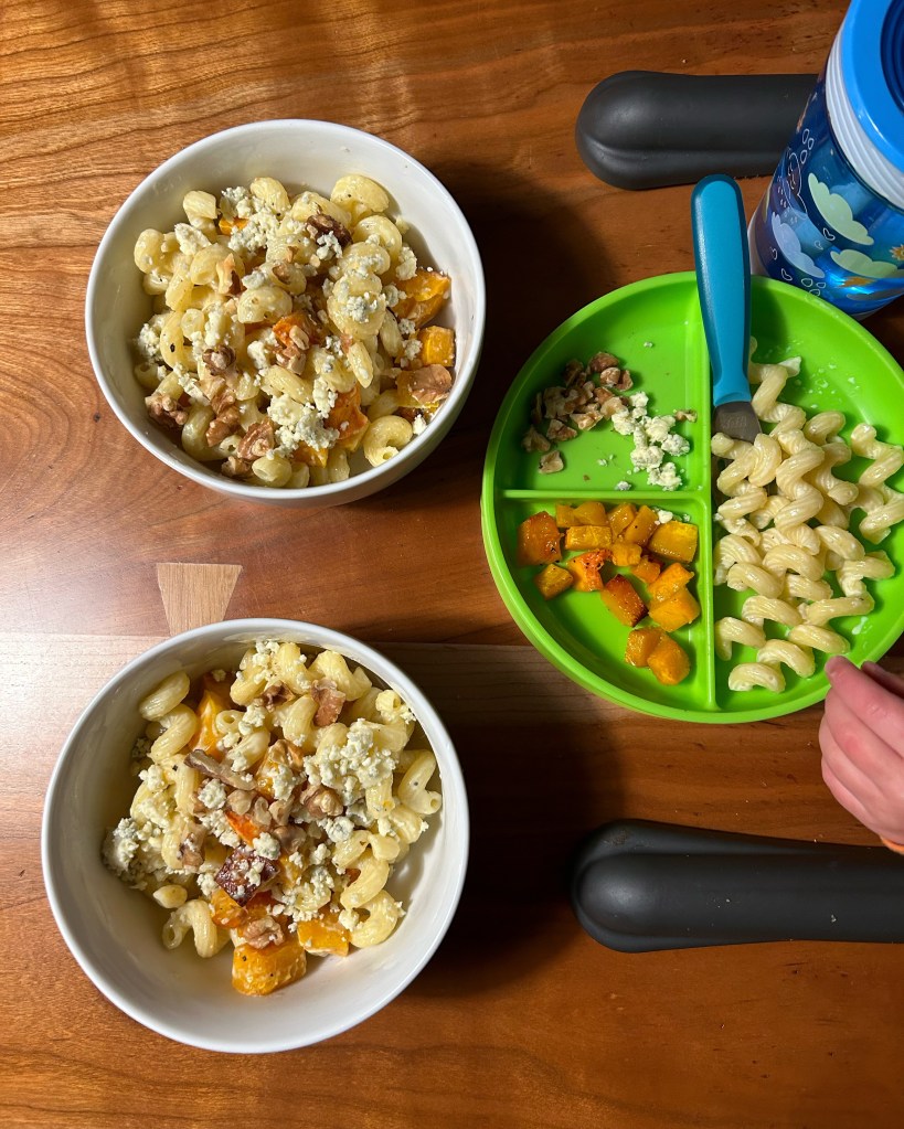 Joey basically spent the rest of the day removing tags and sorting stuff by size. It was quite the undertaking! Meanwhile, I made dinner and salads for the week. I gave Dempsey a little bowl of noodles to snack on while I finished dinner and I heard him yell from the next room “more noodles!” and it was my favorite. I don’t think he would touch any of this meal last time I made it, but he seemed pretty into it this time around. Even the blue cheese and walnuts! Last week, I asked Joey if our daughter would be a headband/bow wearer but I think we got our answer based on how many of those we got from everyone 😂 Dempsey seemed to like wearing some of it! After he went to bed, we watched the newest episode of The White Lotus then took ourselves to bed. A long but good day! Unfortunately, Dempsey has developed a pretty nasty cough, so pray for us that it’s just a cold and not RSV.
