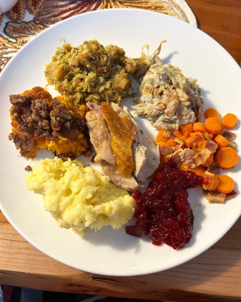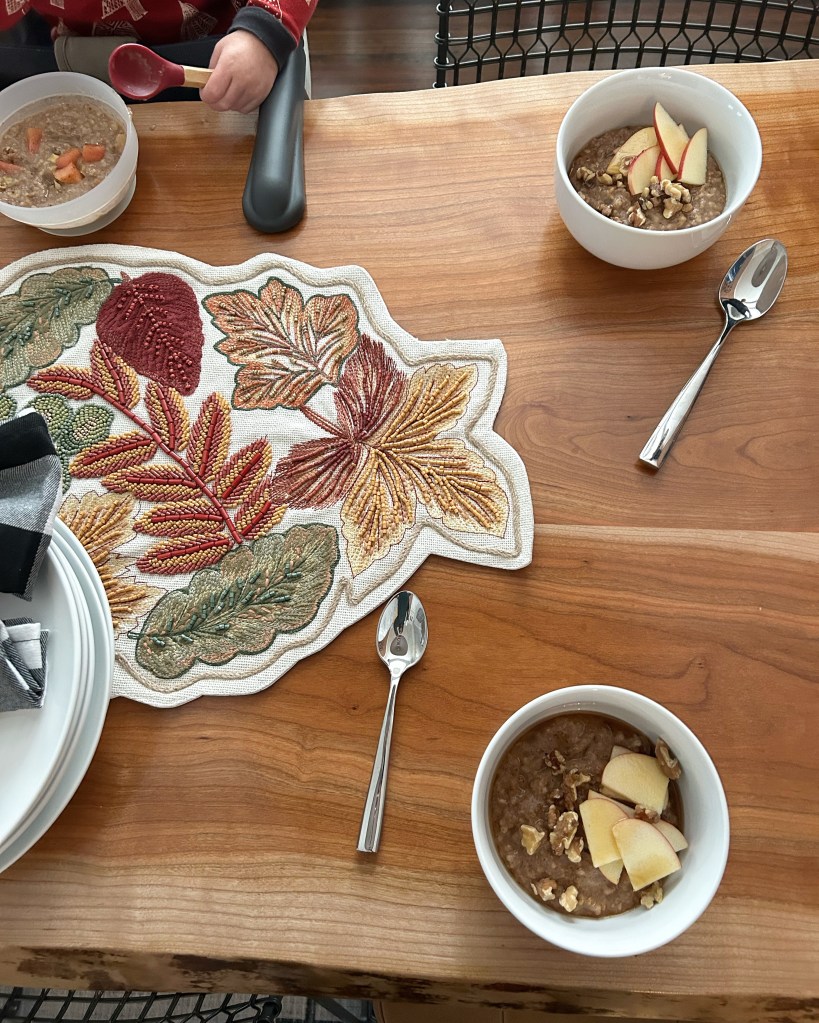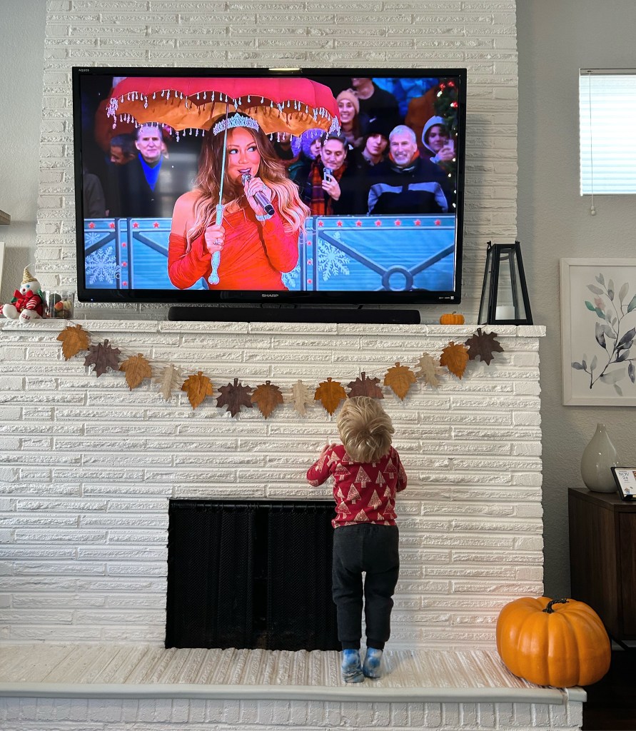 Taught Dempsey to say “gobble, gobble” then headed downstairs for breakfast and the Macy’s Thanksgiving Day Parade. Considered making us some slow scrambled eggs, toast and bacon and then I felt tired just thinking about it, so crockpot apple pie oats to the rescue. Just stirred it all up, put it in bowls, added some toppings and we were good to go! Joey had gotten up early to go on a run and then headed into the kitchen and I don’t think he ever left 😂 Meanwhile, Dempsey and I watched the parade and he kept saying he wanted the big turkey float down and to pop all the balloons 😂😂 I told Joey I thought I was my happiest self watching this parade with a cup of coffee every year, but nothing compares to cuddling on the couch with my toddler while watching it! He was particularly enraptured by The Rockettes and we had to rewind and watch their performance a second time. He had just enough time to see Santa’s arrival before he went down for his nap.