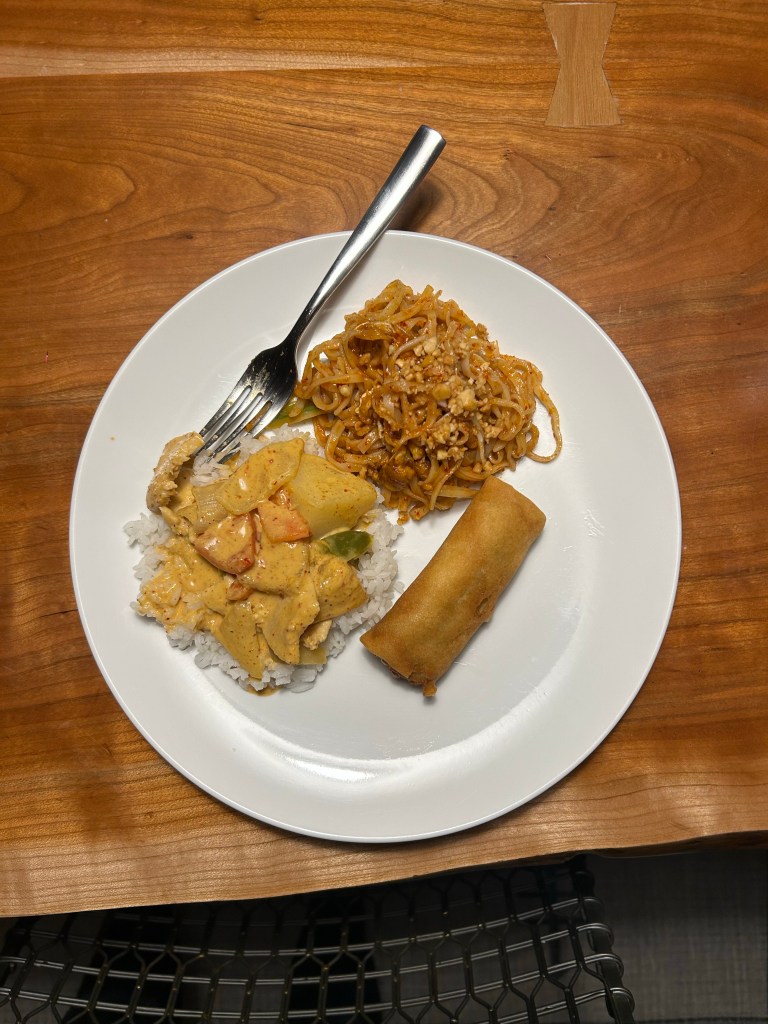 Post-work, Joey did some tummy time with Lyds and both kids got baths before my sis and Wayne came over with take out from Beau Thai. Dempsey was loving egg rolls and his chicken fried rice and our pad Thai and yellow curry were both so good and spicy! Passed around some Telluride Truffles that Chad gifted us for dessert (adults only because they’re boozy 😜) before taking Dempsey up to bed. My sis and Wayne hung around for a little bit afterward but we were all so tired.