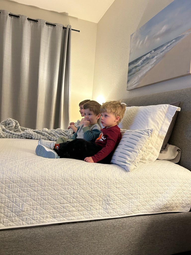 Super Bowl party time! Lydia’s first! Darron and Karla always have such a good spread and I love watching those little boys run around and play together. They all posted up in bed to watch TV together later 😍 As usual, I barely caught any of the commercials — were there any good ones?? — and I had to ask Joey who won on our drive home 😂😂 Lydia slept for all of half an hour then proceeded to be awake and screaming until Joey laid her on a blanket on the floor. That girl! We got home late so everyone went right to bed. Lydia slept from 10 to 3, so maybe I should just always let her be awake for five hours before bed 😋