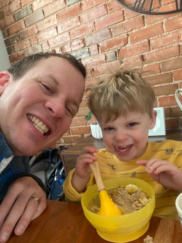 Truly living for warmer days this winter so we can get outside! After breakfast, we loaded up the double stroller and took the kids up to Tennyson for coffee. Lydia loves a stroller nap thankfully so it’s easy to leave the house knowing she’ll sleep in there. Sat inside Huckleberry Roasters for a bit then walked back home and then from one stroller to the next Dempsey went so Joey and he could go for a run then play at the park. Look at that cool boy in his running sunglasses 😂😍 Lydia and I were at home making mini corn dog muffins that were kind of a mess but oh well. After lunch, Dempsey went down for a nap and I took a shower while Dad got some cuddle time with his daughter 🤍