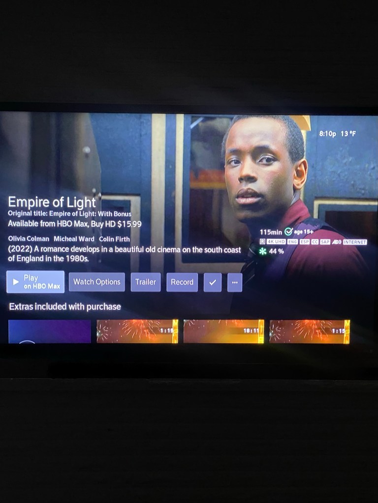The second half of the day included a long walk around the lake, wings and a movie. Joey had mentioned this wing place he wanted to try and Friday seemed like a good time to do it. It was a bit of a drive but I thought the ordering/pick up was smooth as could be and the wings and fries were GOOD. And also really meaty. Dempsey ate some waffle fries but would hardly touch the wings so I guess he’s a Fire on the Mountain loyalist 😂 Started Empire of Light after toddler bedtime and halfway through we weren’t really sure why it had such a bad rating. More on this later though.