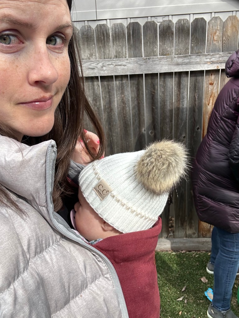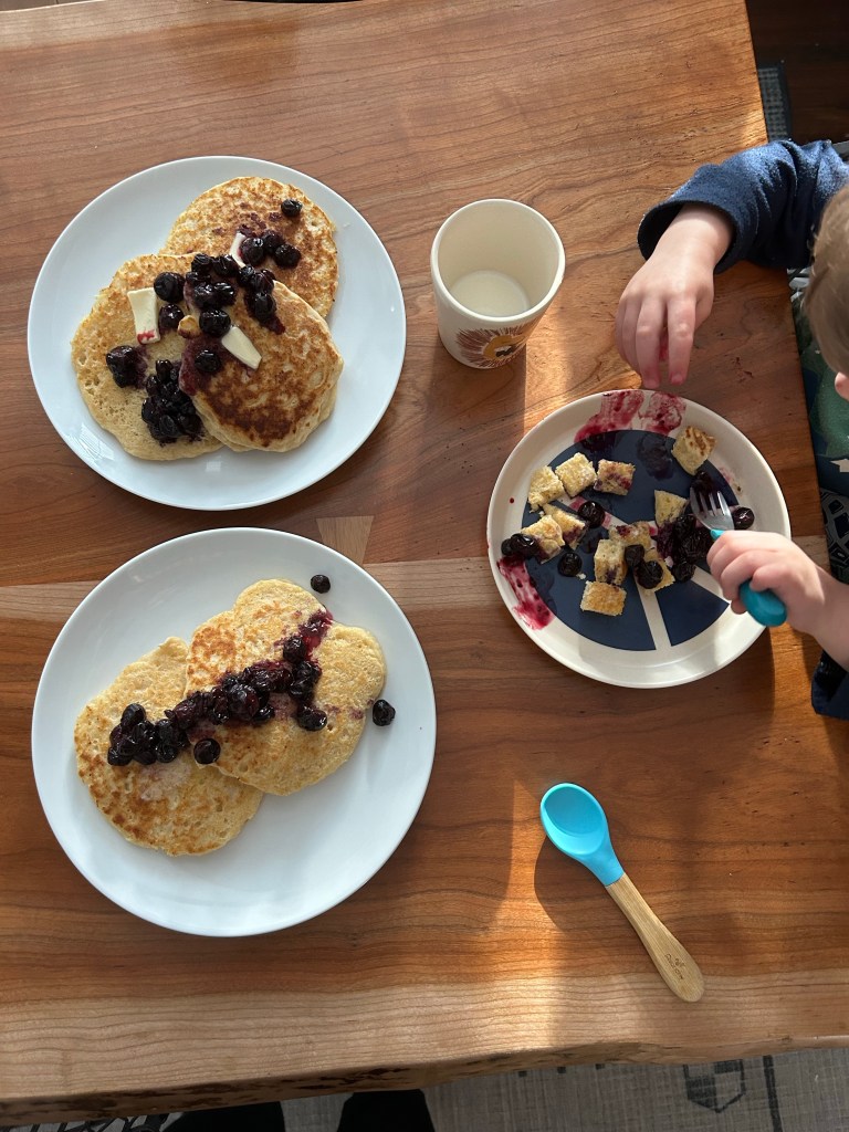 Ricotta pancakes with blueberry sauce to start Saturday morning. Always trying to breathe through my impatience and anxiety on weekend mornings, knowing breastfeeding takes so long and baby only has about an hour and a half to be awake before she’s a little crying overtired mess and we want to fit breakfast in between those two things 𤪠We had plenty of time though and after she was peacefully napping, we watched Jimin’s performance of “Like Crazy” on Jimmy Fallon. Dempsey remarked “look at all those Jimins” about the group of dancers and then wanted to watch it a second time, which was obviously fine by me! Got ourselves ready and out the door a little bit later to head to Bobby and Becca’s baby shower. We were all in the garage waiting for Dempsey and when I peeked into the backyard he was shoveling snow in a straw hat ššš I can’t with this kid, he’s too funny! We had a good time at the shower. Becca looked beautiful and Dempsey managed to spill a drink during the 30 seconds I wasn’t right next to him. Lydia needed a full outfit change as soon as we got there but made up for it by taking a little nap in Joey’s arms š¤
