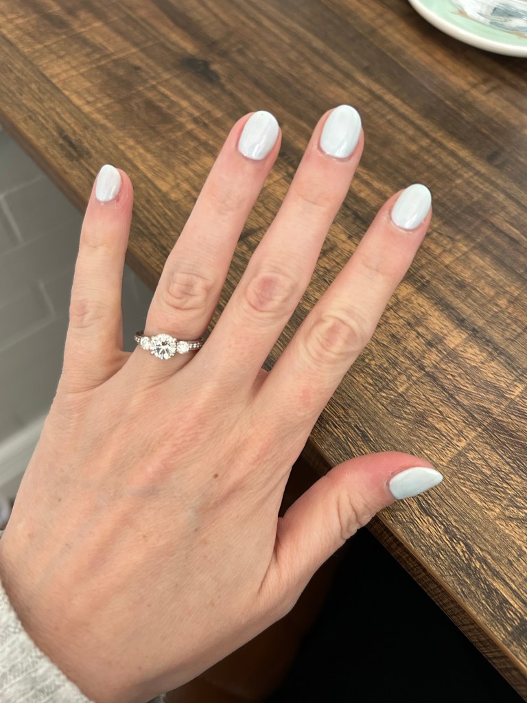 Friday is my “flex day,” so I started it with a baby blue manicure (Dempsey’s suggestion š) then tried to fit in too many other things in addition to some work. Note to self: don’t overschedule! After the kids and Joey were both home, we made a spontaneous decision to go out to dinner. Plan A to go to Cart-Driver for pizza did not work out when the wait was over an hour, so we Plan B’d our way to Tocabe instead. Fast casual seems to work out pretty well anyway. After Dempsey was in bed, we watched last week’s episode of Top Chef and there is just no hope for Joey to learn anyone’s name by the end of this season š