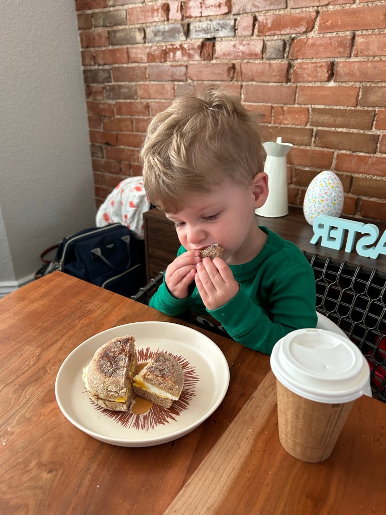 A pretty simple Sunday. Woke up and fed the baby before heading out on a coffee run. Joey is so good at just grabbing Demps or Lydia and running an errand with them in tow, but I am quicker and less stressed if I go by myself š Joey was just finishing up breakfast sandwiches for us all when I got back. Dempsey is loving those lately and almost finished the whole thing š A bit later, I headed out for a haircut and while I was gone, our little lady rolled from back to front for the first time. Please stop growing up so fast! When I got home, Dempsey asked me where my haircut went and then told me it looked nice. He napped, Joey and I did some chores, both kids got baths and then we went to dinner with Grandpa Steve and Lorna at Sunnyside Supper Club. We had a senator sitting behind us on one side and a Top Chef alum sitting behind us on the other side, so I guess Sunnyside Supper Club is the place to be! We had great drinks and food and a nice catch up with everyone. Back at home, bed for both kids and SNL from three weeks ago for us. I have almost no idea who Travis Kelce is but I thought he was really good and even better than a lot of actual actors they have host.