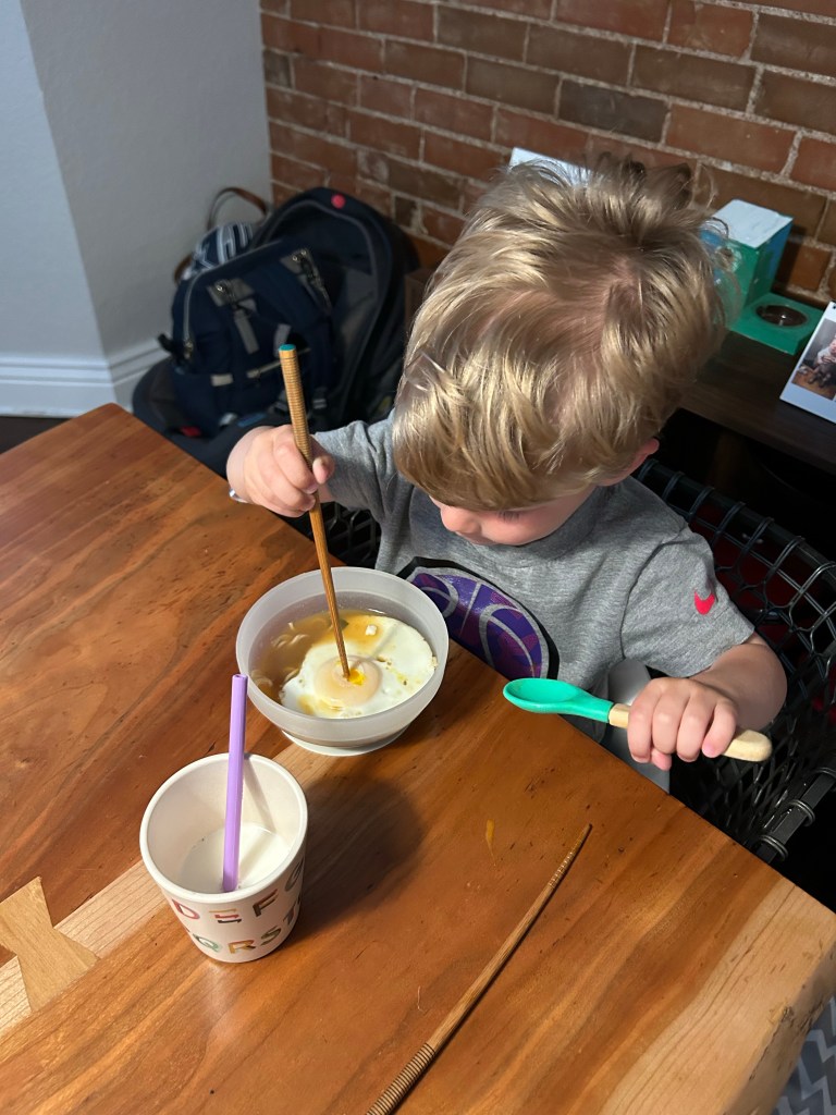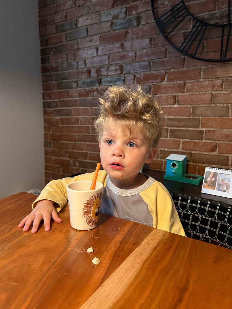 Behold Dempsey’s hair on Friday morning 😍 He was a bit worn down at Grandma’s but by the time I picked him up, he seemed mostly okay. Joey was putting Lyds down for a late nap, so I took Demps to pick up wings at Fire on the Mountain with me and it was actually kind of nice going someplace with him, just the two of us. We saw a guy drop his to-go order of wings outside his car, so Dempsey wanted to tell Dad all about it when we got back. He’s also the king of getting every single bit of chicken off the drumstick 😂