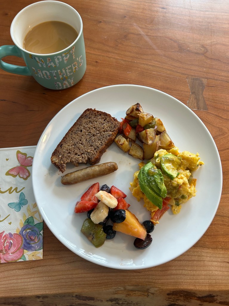 A Mother’s Day whirlwind 🥰😂🤪 Lyds was up at 5:45 AM! She’s been a habitual early riser but the 5 o’clock hour ain’t it, little girl. Luckily she went back to sleep in Joey’s arms and then I woke up and it was already 7! Went into Dempsey’s room and asked if he wanted to come cuddle in Mom and Dad’s bed and he told me no 😂😂 Got the sweetest homemade gift, flowers and cards from my babies and their dad and then just complete chaos as I tried to shower while Joey got the house ready for visitors and then both of us trying not to lose our cool when Dempsey chucked a bottle of milk I had just pumped into the bathroom and spilled the entire thing 🤬 And during all of this, Lydia was absolutely losing her mind, shrieking. It was a cry I’ve never heard her do before and it was the saddest. Put her down for a nap just as everyone was showing up for breakfast. Amid all the choas, a delicious breakfast, quite the collection of flowers for all the moms, some baby talk and snuggles with my girl. Also Dempsey asking Siri to tell knock knock jokes and laughing hysterically even though I know there’s no way he got any of those 😂 Aside from Lyds not feeling well, I wouldn’t have it any other way!