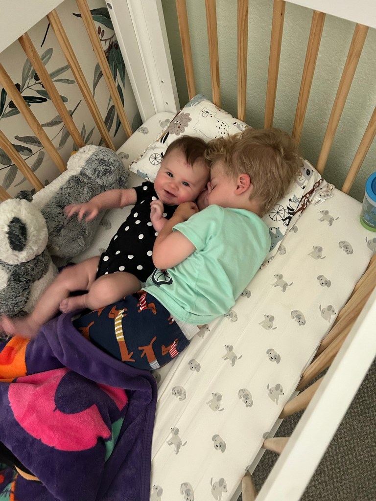 Didn’t mean to post a bunch of pictures of the back of Dempsey’s head but they do show off his great hair so there you go. These two little people have been both driving and keeping me sane. If you’re a parent of young kids, you know what I mean π Dempsey is happiest when he’s outside, so we have been loving the warm weather and we even got the porch swing up this week. He’s been climbing up next to me only to immediately ask, “do you need another push?” and getting back down. I love it, honestly. Miss Lyds continues to be happiest in our arms and she’s also practicing sitting up, using her voice and getting cuddles from Big Brother. My absolute favorite time of day is 3 PM when I wake Demps up and the three of us chill in the nursery for a bit π€π€π€ Last but not least, I am forever grateful for my mom. Literally don’t know what I’d do without her help. She took us all (plus my sis!) to the Butterfly Pavilion on Monday then came and watched Lyds on Wednesday, so Dempsey and I could go to the library. She is everything and more to me and my kids are so lucky to have such a wonderful Grandma!