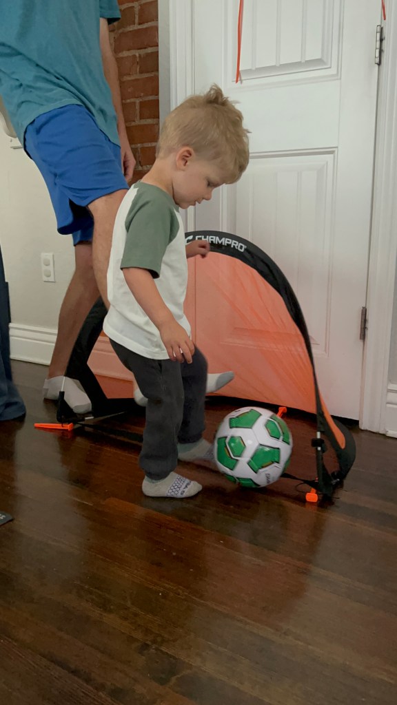 Joey was up early on Saturday so he had Greek yogurt pancake batter ready to go by the time I got up, fed Lyds and made it downstairs. So good and fluffy!!! Dempsey is so into drawing right now and I love seeing what his little brain comes up with. He told me that little face was Coco πŸ₯ΊπŸ˜ He also wanted me to lay on the stairs with him to look up at the ceiling. Joey had a meeting at 10 because he’s coaching Dempsey’s soccer league that starts this Saturday! Sounds like it’s going to be wild but fun πŸ˜„ While Demps went down for his nap, Lydia and I ate lunch and a purple straw πŸ˜‹