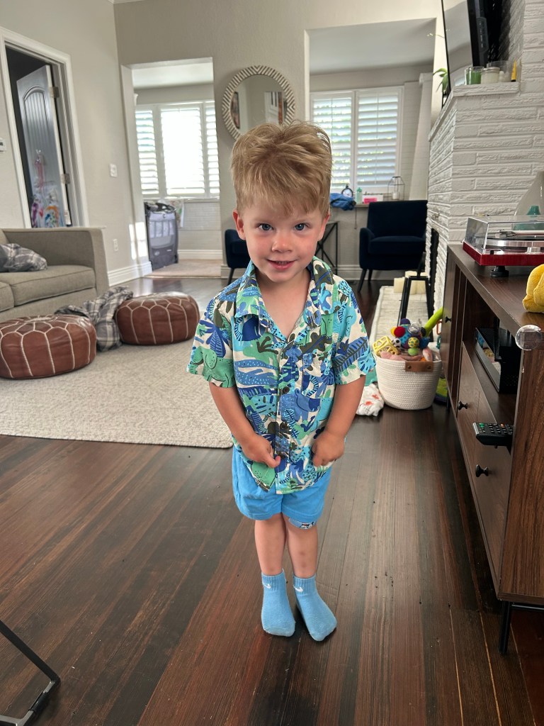 Both kids were up and ready to party at 3 when the rest of our family showed up 🎉 I made a melon mosaic that turned out pretty good, if I do say so myself and everyone brought some really good sides to go with the ribs. The weather ended up holding out so that we were able to be outside the whole time! Spruced up some store bought ice cream sandwiches for an easy and festive dessert and got a pic of all three kids in the beignet outfits Lori bought while we were in New Orleans 🤍 Started to rain, hail, thunder and lightning just as everyone was leaving. We got both kids to bed and finally finished our movie. I liked it! On to MI2! I truly hope everyone had an equally nice weekend 😊