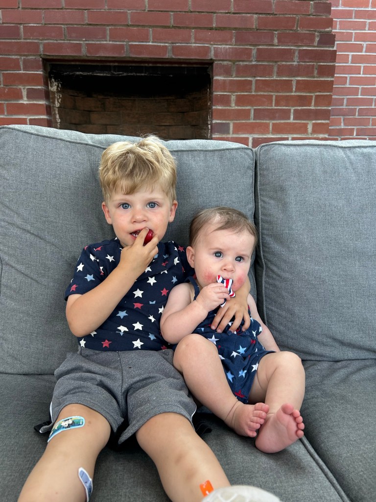 A very chill Monday, featuring alternating running time for Joey and I, breakfast at home, a trip to the pediatrician 😬 and impromptu fireworks in the front yard when we let the forecast for Tuesday freak us out. After breaking out in hives from both avocado and yogurt, our pediatrician recommended we bring Lydia in. She chatted with us for a bit then recommended we see a pediatric allergist so we’ll be looking for one this week. Bummer! Banh mi sliders for dinner and then Lori, Chad, Delaney, Lorenzo, my sis and Wayne came over to light sparklers and fountains. I think Dempsey was a little nervous and a lot excited about fire and loud sounds 😂 We had a lot of fun 🤍 Lydia slept through it all and had another good night in her crib!