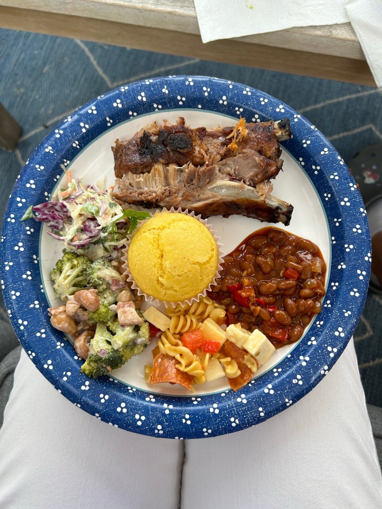 Happy 4th of July! We had to wake both kids up at 7!!! Got one fed, both dressed and in the car to first, pick up coffee and breakfast burritos and second, head to the lake to fish! Lyds and I wanted up see how it’s done. They didn’t catch anything this time around but we still had fun. Demps is getting so good at casting! While Dempsey was down for his nap, Lydia and I started watching the hot dog eating competition then while she was sleeping, I finished up some prep for the BBQ.