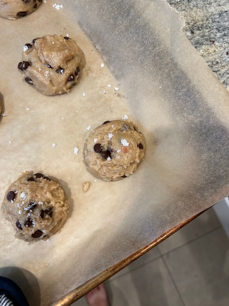 Lori is on vacation, so I took Friday off to hang with the kids 🤍 We sang a silly “Happy Birthday” to Henry, had band practice, took a trip to the library and after Lydia’s 8 month photo shoot (8 months! I can’t believe it!), Demps and I made cookies and watched Willy Wonka. He asked me “is there egg in here?” before eating the batter (like that’s ever stopped him before 😂), but lucky for him, they were vegan! And see his piece of pink salt? He really wanted to use that!
