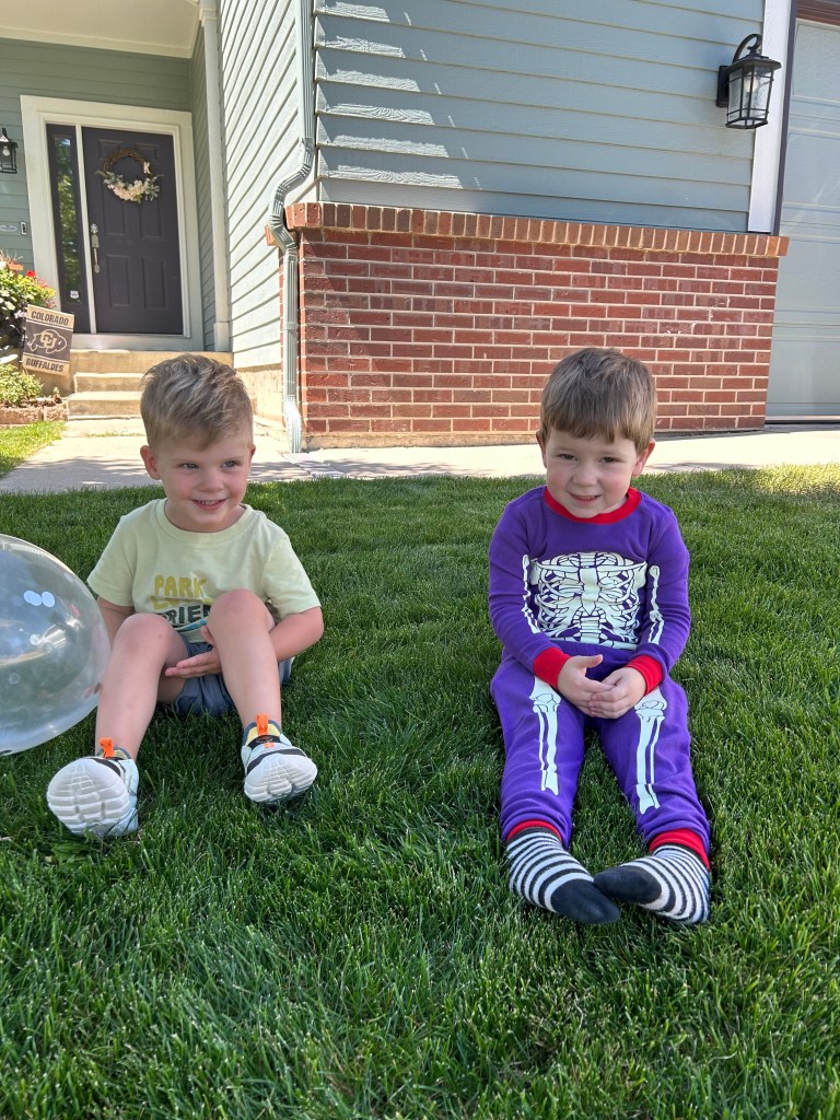 We all slept poorly and had a late start to our Sunday. I tried to shake it off with a run and then I made us all waffles. Lydia made a mess but she seemed into it! Afterward, more crib standing 🤪😬 Dempsey wanted a snack and ate two full peaches! At 11:30, we headed to Bailey’s birthday party. That’s Dempsey’s usual lunch and nap time and he looked positively exhausted in the car but pizza, ice cream and playtime with other kids seemed to revive him long enough to enjoy the party. We left after he threw a handful of wood chips at another kid 😩 Lyds immediately crashed in the car and Demps ended up taking a late nap too. Made us corn and potato chowder for dinner and though Demps declared he didn’t like it, Lydia ate quite a bit! Took an evening stroll afterward then got the kids to bed and watched Big Brother.