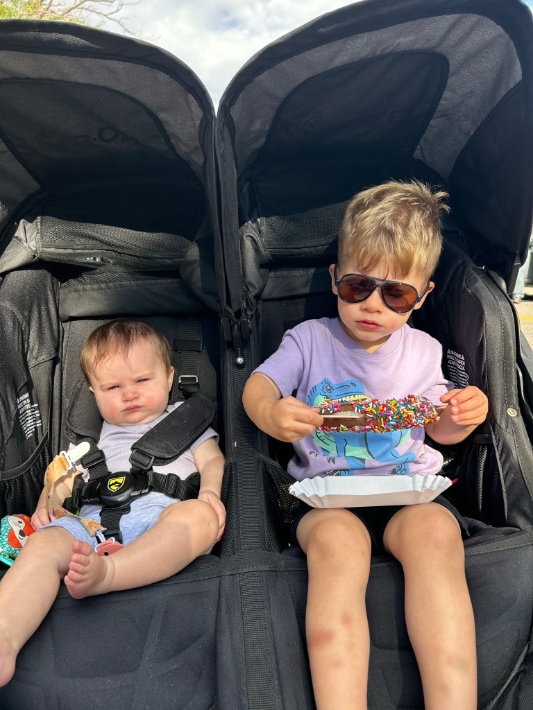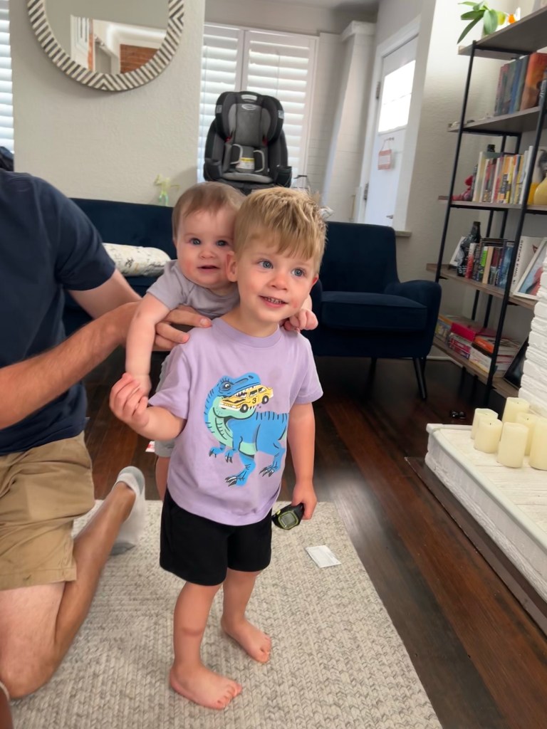 Saturday started with zucchini walnut pancakes (and a nut-free, zucchini-free version for Little Lyds) and then my sis and Wayne came over to take Demps to his swimming lesson and hang with him for the rest of the day. Joey’s cousin’s husband passed away at just 27 and we had his funeral to attend in Colorado Springs. Just truly truly awful. He was a police officer so there were a ton of other officers in attendance, in addition to so many friends and family members. A handful of people gave speeches and it was nothing short of incredible to hear them speak about Fred, who was a genuinely happy, smart and caring person. I was so moved by how many people stood up there and called him their best friend. I believe it!!! A beautiful tribute to him but just such a devastating thing to happen. Lyds got a little restless toward the end of the service but did good otherwise and I hope her little smile and cuddles helped everyone a bit. We were told Demps had a good lesson and even pulled himself up out of the pool on his own! Afterward, we all had dinner at Tocabe and I’m so grateful to Aunt Bean and Uncle Wayne for taking such good care of our boy 🀍